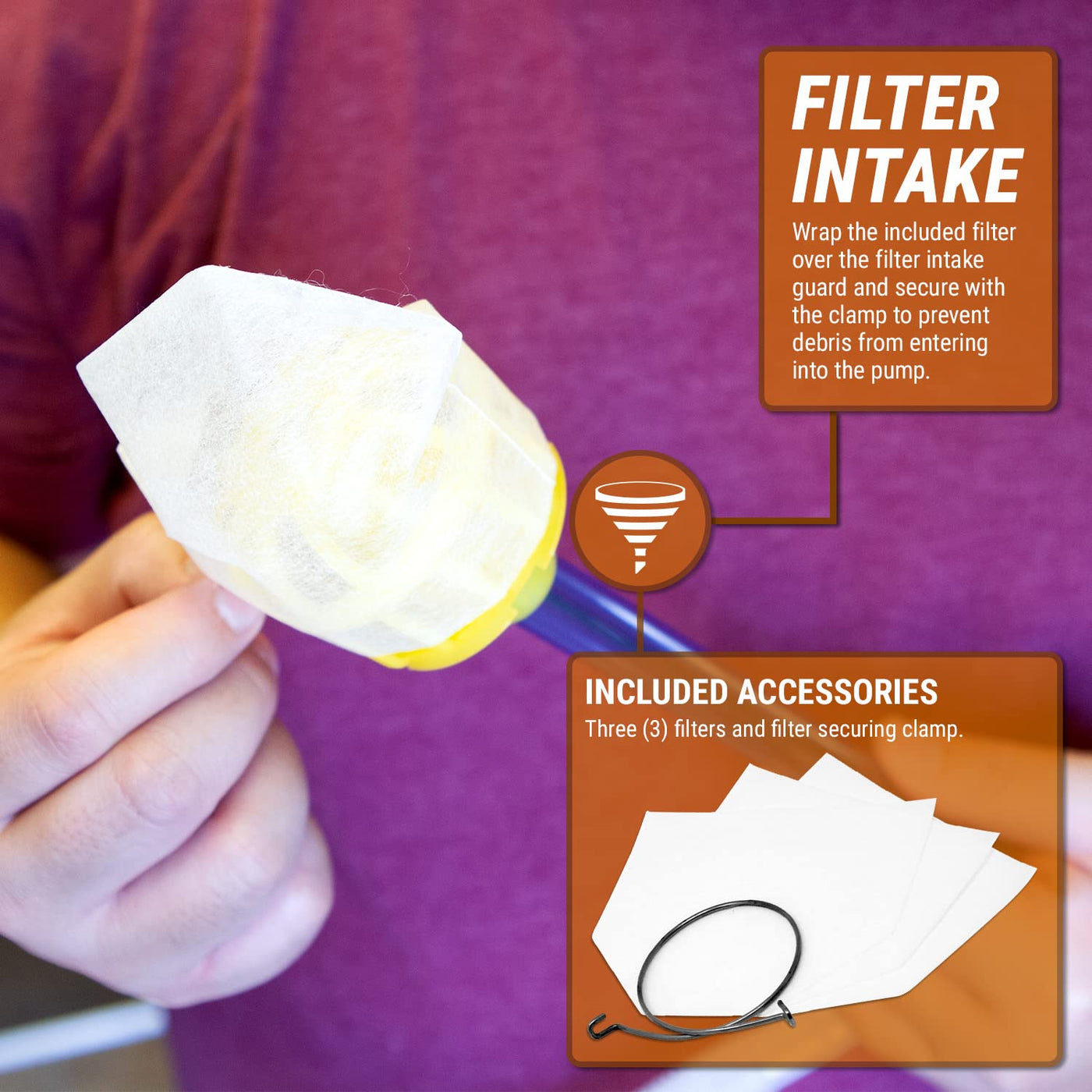 • Q: How are the replacement filters attached to the pump? A: The replacement filters can be easily attached using the wire clamp that is included with the TERA PUMP.