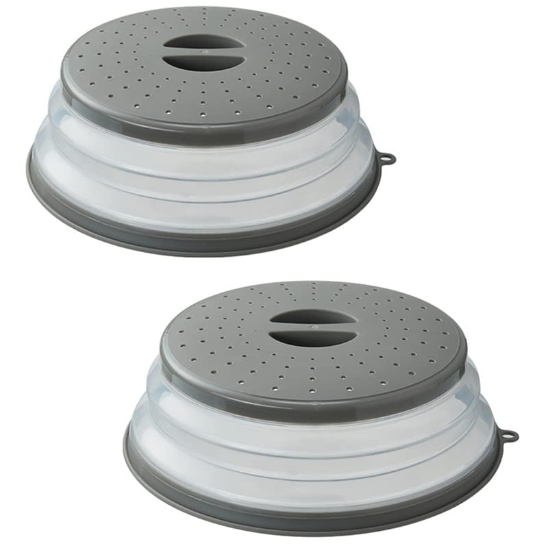 Vishui 2 Pack Upgraded Collapsible Microwave Lid, Vented Microwave Splatter Cover, 10.5 Inches Plate Cover With Hook Hole, Veget