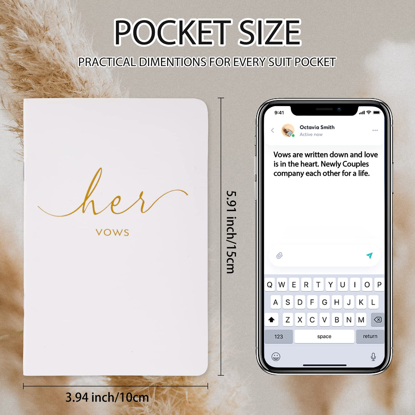 - Q: How portable are these vow books? A: These vow books are pocket-sized and compact, making them easy to carry in suit jackets or pockets during the wedding day.