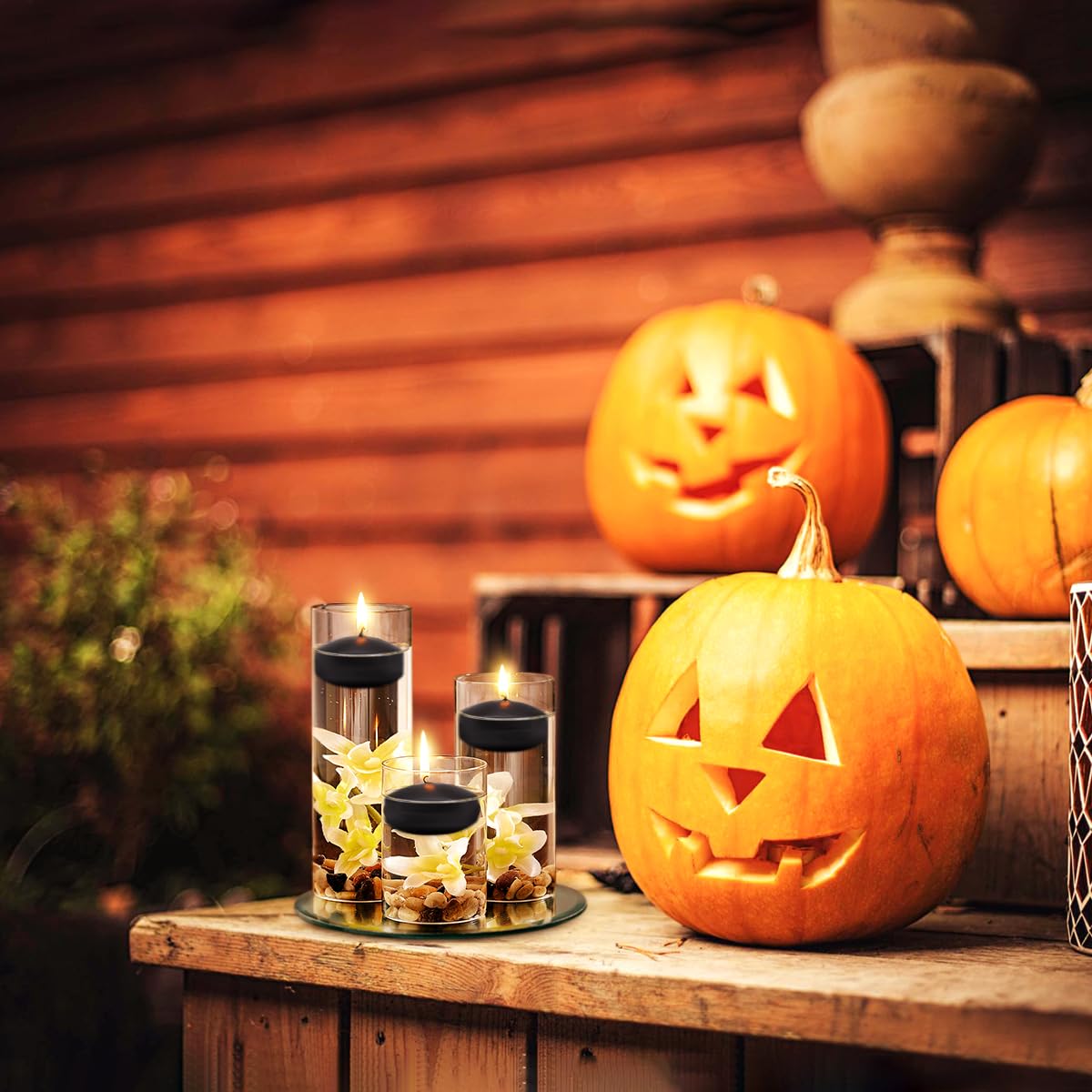6 Hour Black Floating Candles, Unscented Small 2 Inch Dripless Pool Water Wax Candles for Cylinder Vase, Centerpiece at Wedding,