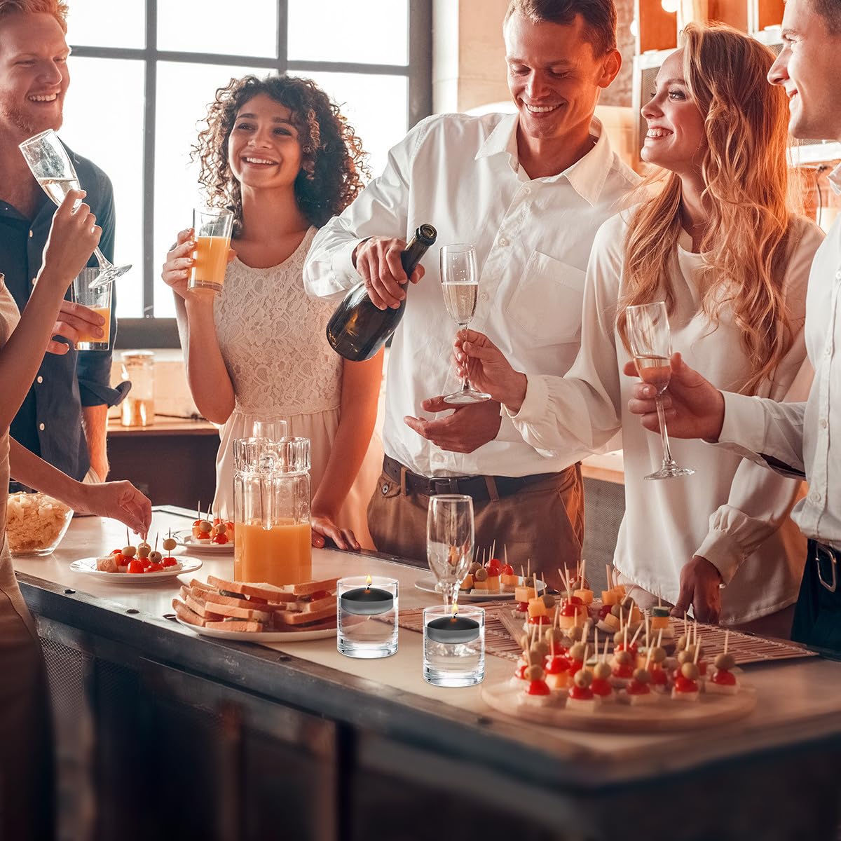 Remind: If there s a lot of motion in the pool, safety first, place in a deep glass container with water. Please make sure that the opening of the cylinder/pillar vases is slightly bigger than 2 inches across to leave a little room between the candle edge and the vase. Occasions: Wedding Party Holiday Fit in Containers: Cylinder Vase Pillar Vase Mason Jar Package Includes: 24 x 2.0 inch Black Floating Candles