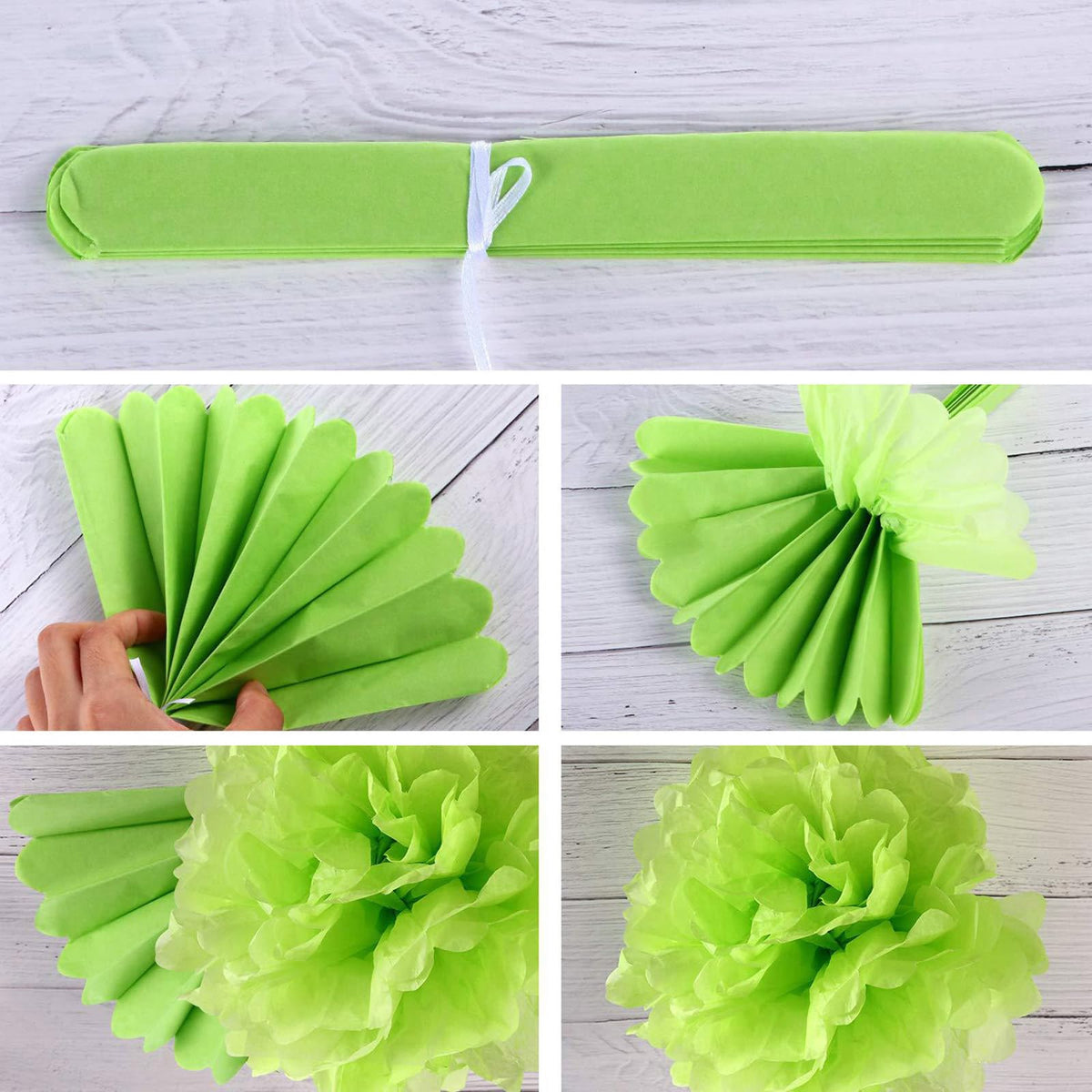 • Q: What material are the pom poms made of? A: The pom poms are made from high-quality tissue paper, which is lightweight and easy to work with.