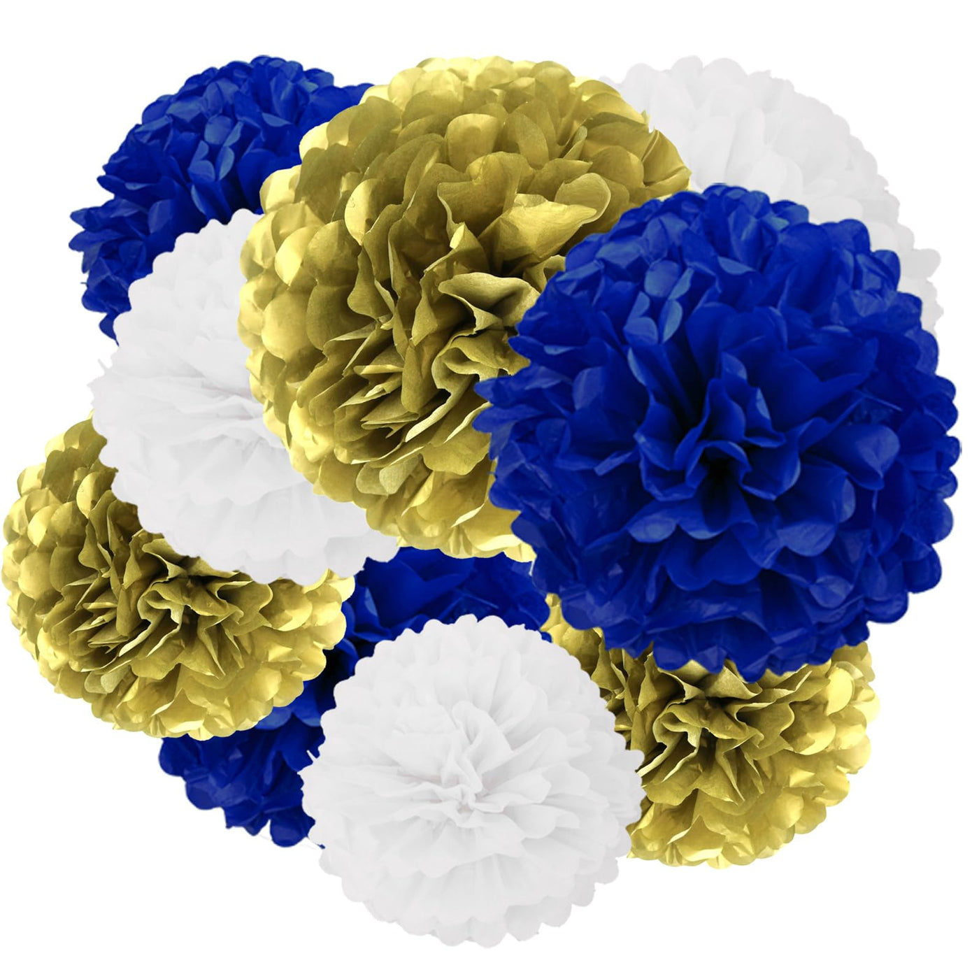 • Q: Do the pom poms come in multiple colors? A: Yes, the AimtoHome Pom Pom Party Kit features a combination of navy blue, gold, and white colors, allowing for a versatile decoration theme.