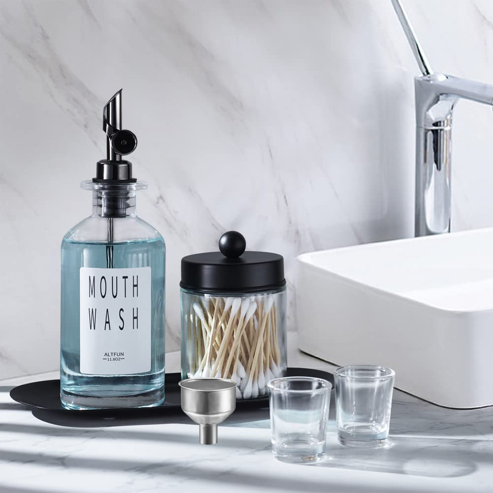 Altfun Glass Mouthwash Dispenser For Bathroom With Cups, Style Mouthwash Container Bottle With Qtip Holder,Glass Bottle 11.8Oz R