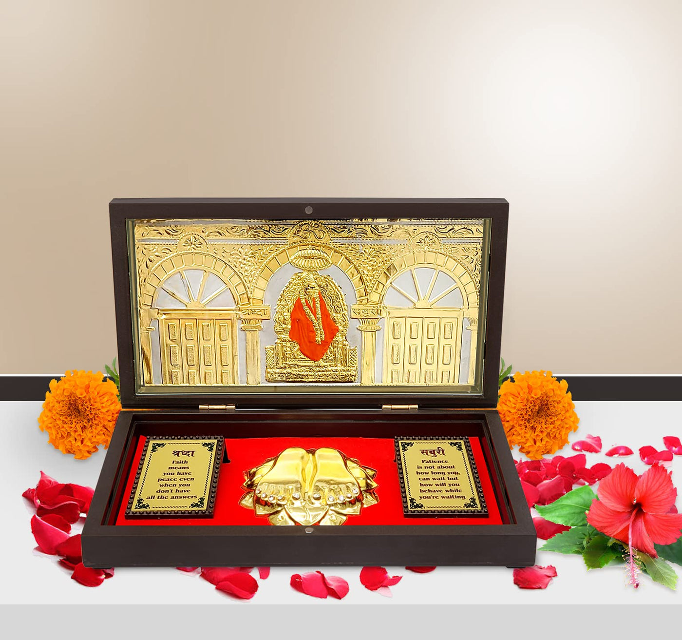 ARNAVIRA Plastic Shirdi Saibaba Gold Plated Photo Frame With Charan Paduka Pocket Temple For Diwali Gift,House Warming Gifts Ret