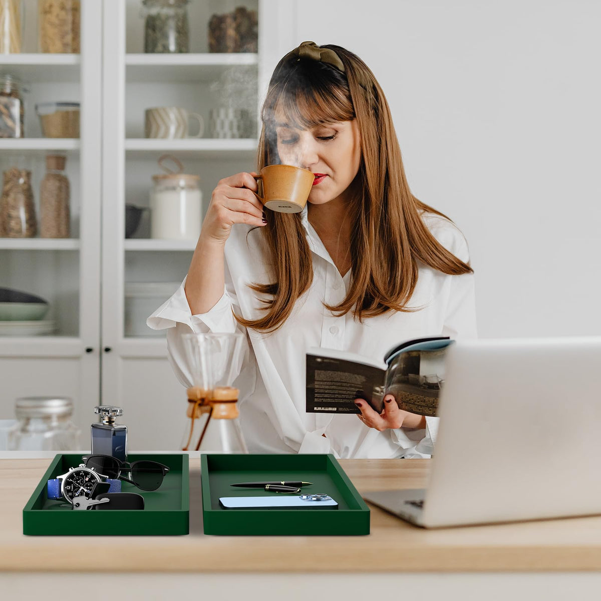 Bbk Bathroom Vanity Tray 11.8 In- 2 Pack(Large) Silicone Bathroom Tray For Counter, Perfume Key Trinket Ring Tray, Decor Soap Di