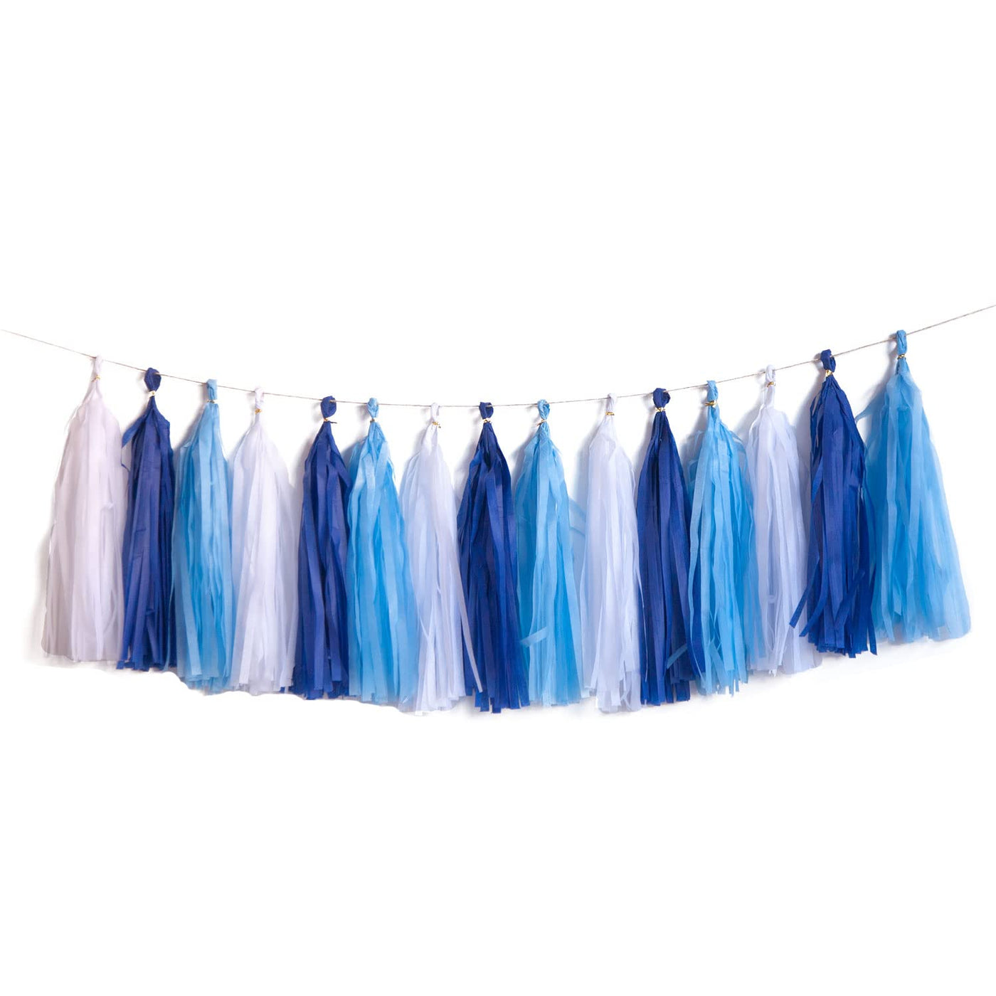 Blue Tassel Garland,Tissue Tassel Banner for Baby Showe Boy Party Decorations,Pack of 15