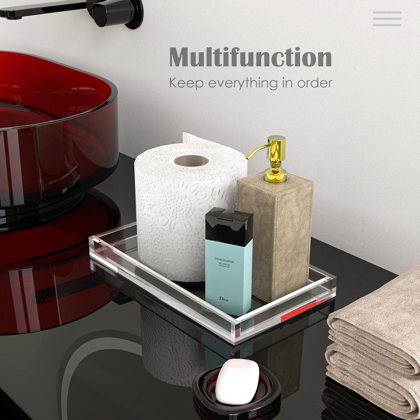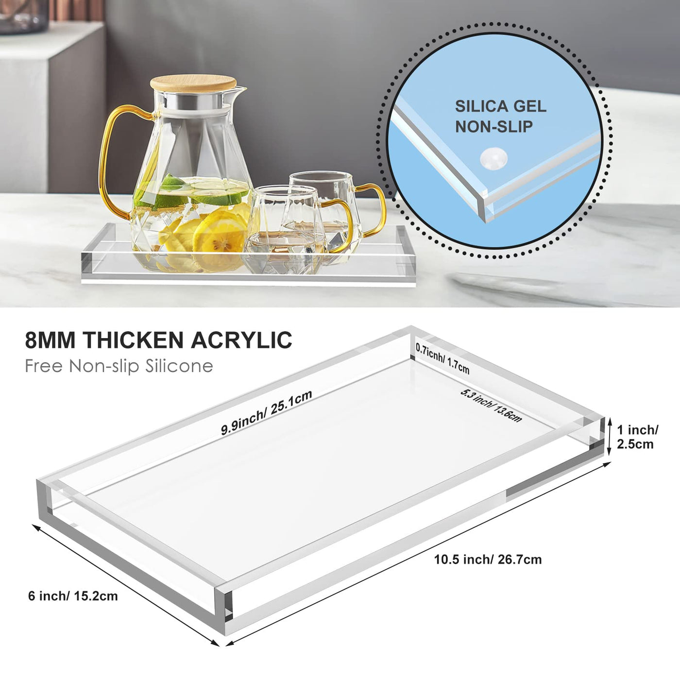 Cilinta Vanity Tray 8Mm Thicken Clear Acrylic Organizer Tray 10.5 * 6'' For Bathroom Sink Countertops, Dresser Tops, Toilet, Per