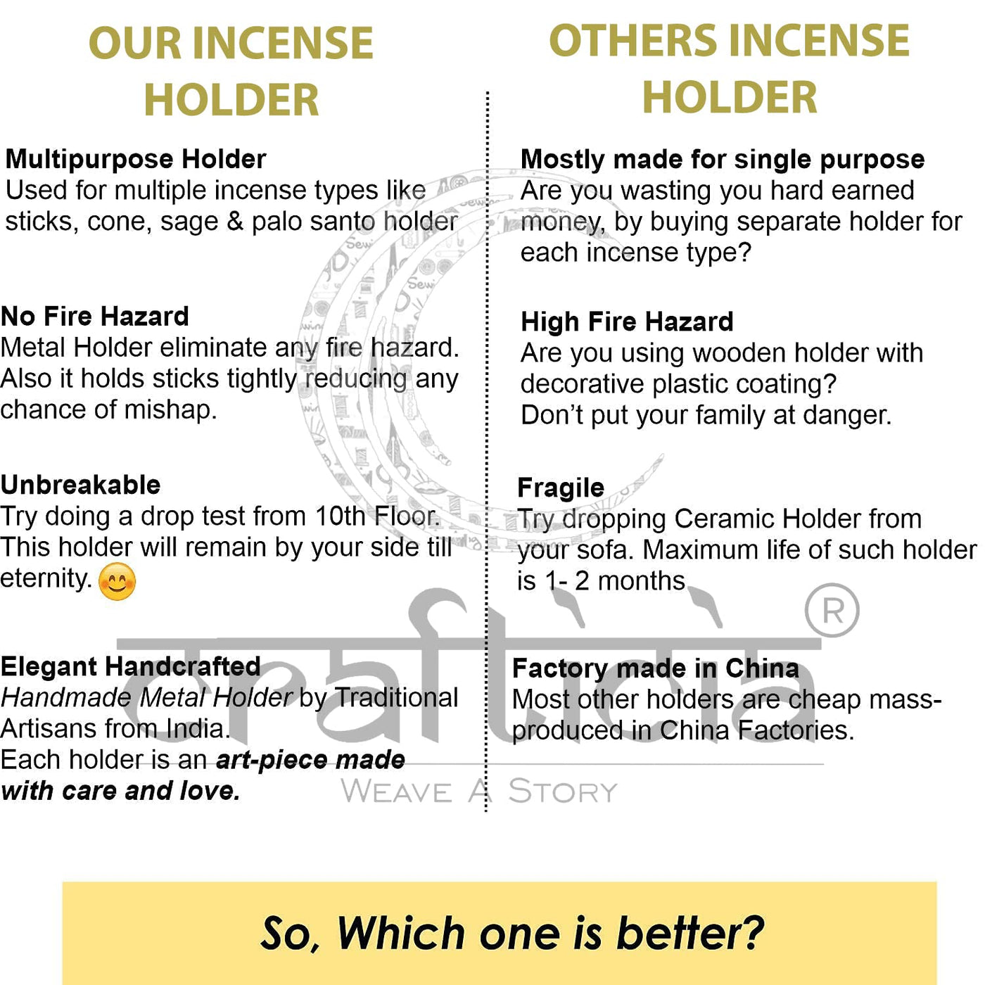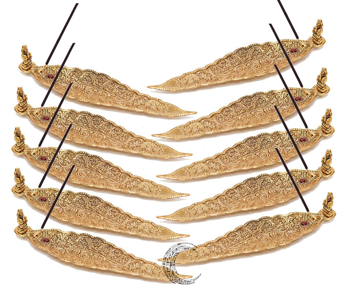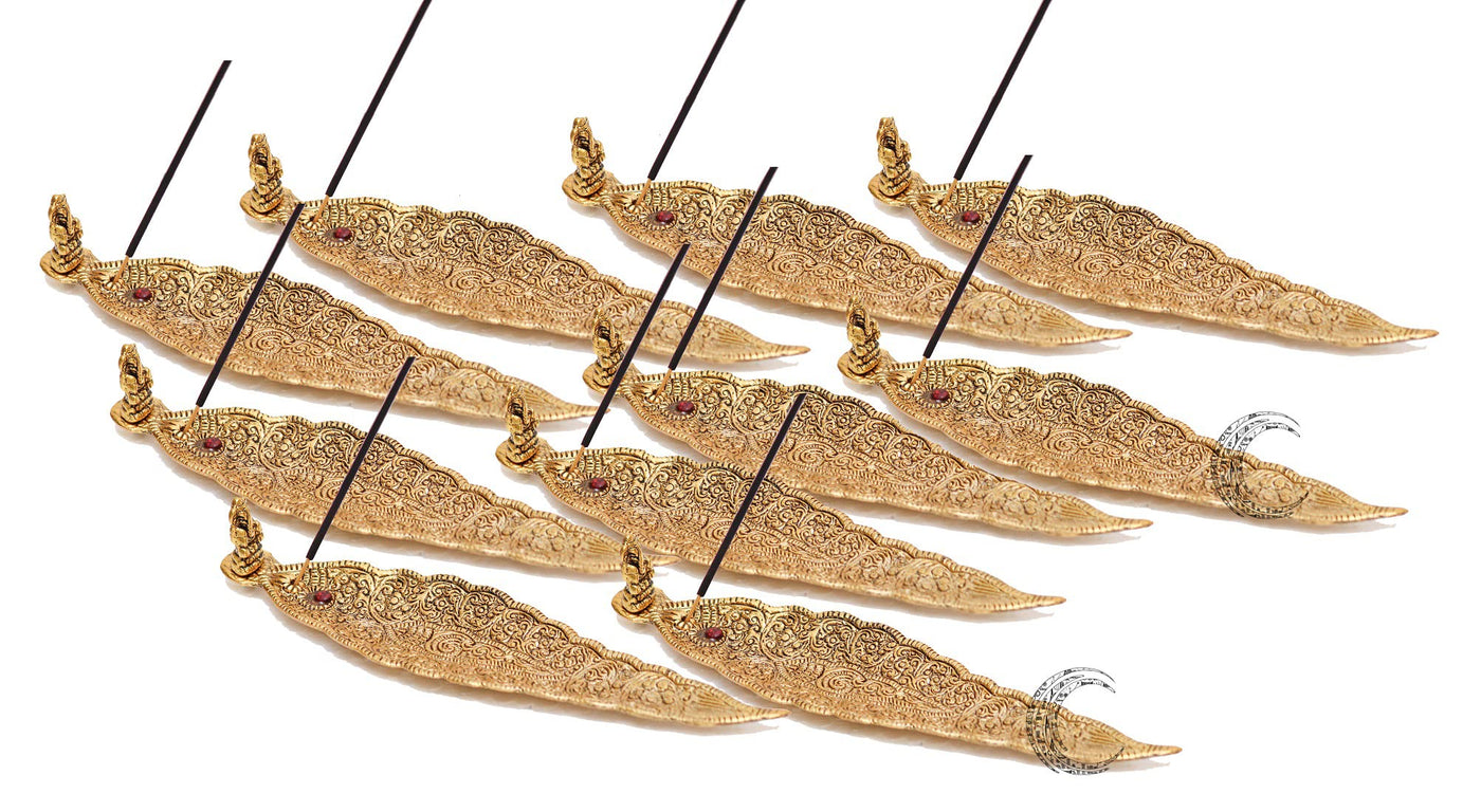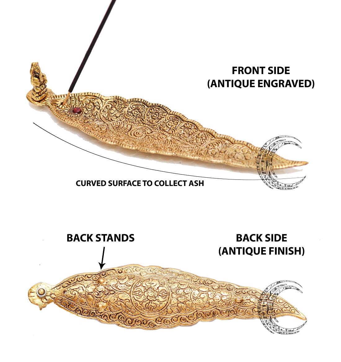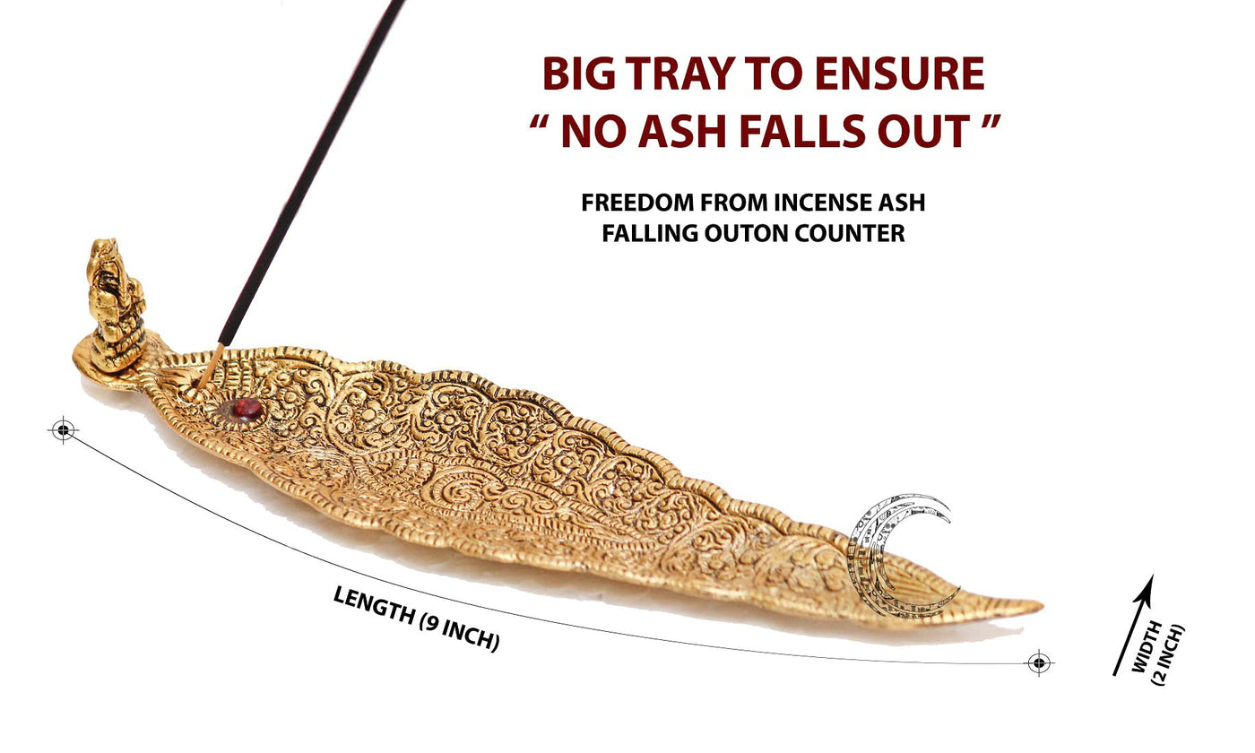 Crafticia Aluminum Incense Holder & Ash Catcher Agarbatti Stand Featuring Ganesh Figurine (9x2 inch) (Gold Holder, 10)