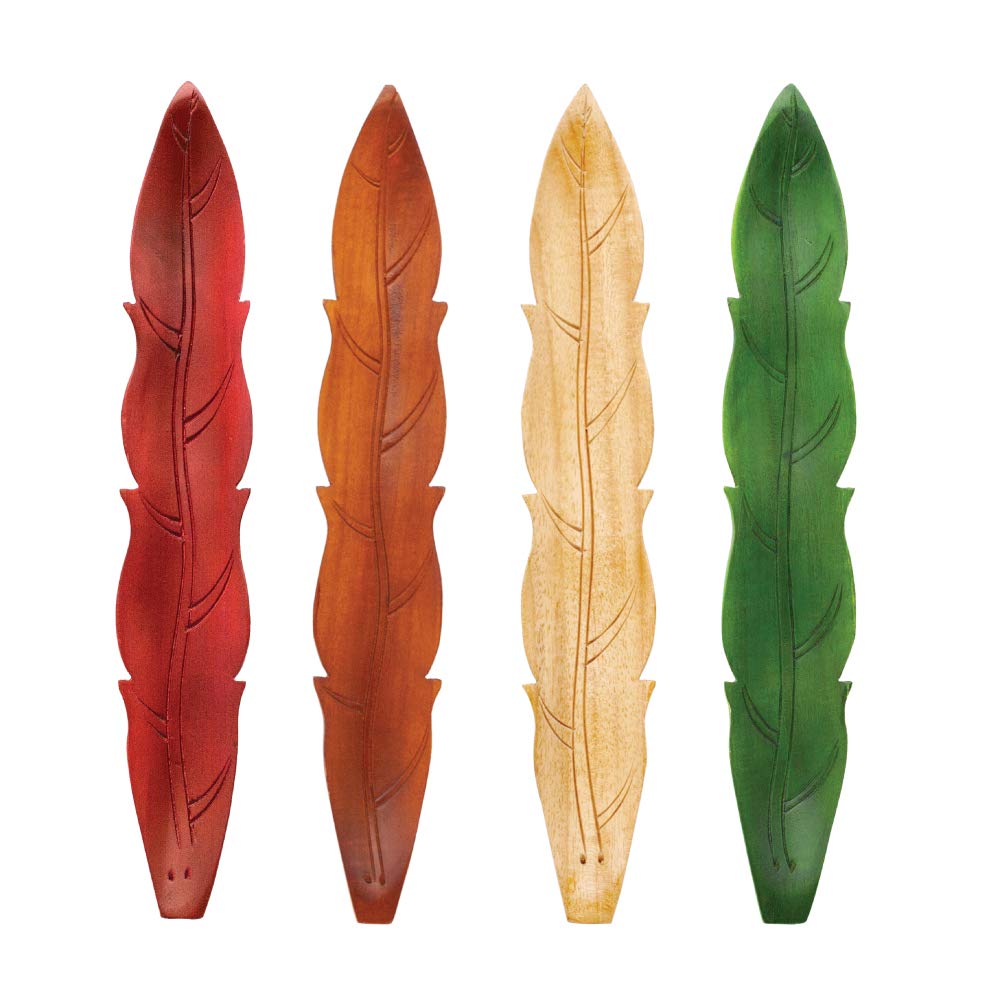 Cycle Pure Soulveda Wooden Agarbatti Stand with Ash Catchers, Pack of 4 | Handmade Incense Sticks Holders | Leaf Shape Dhoop Sti