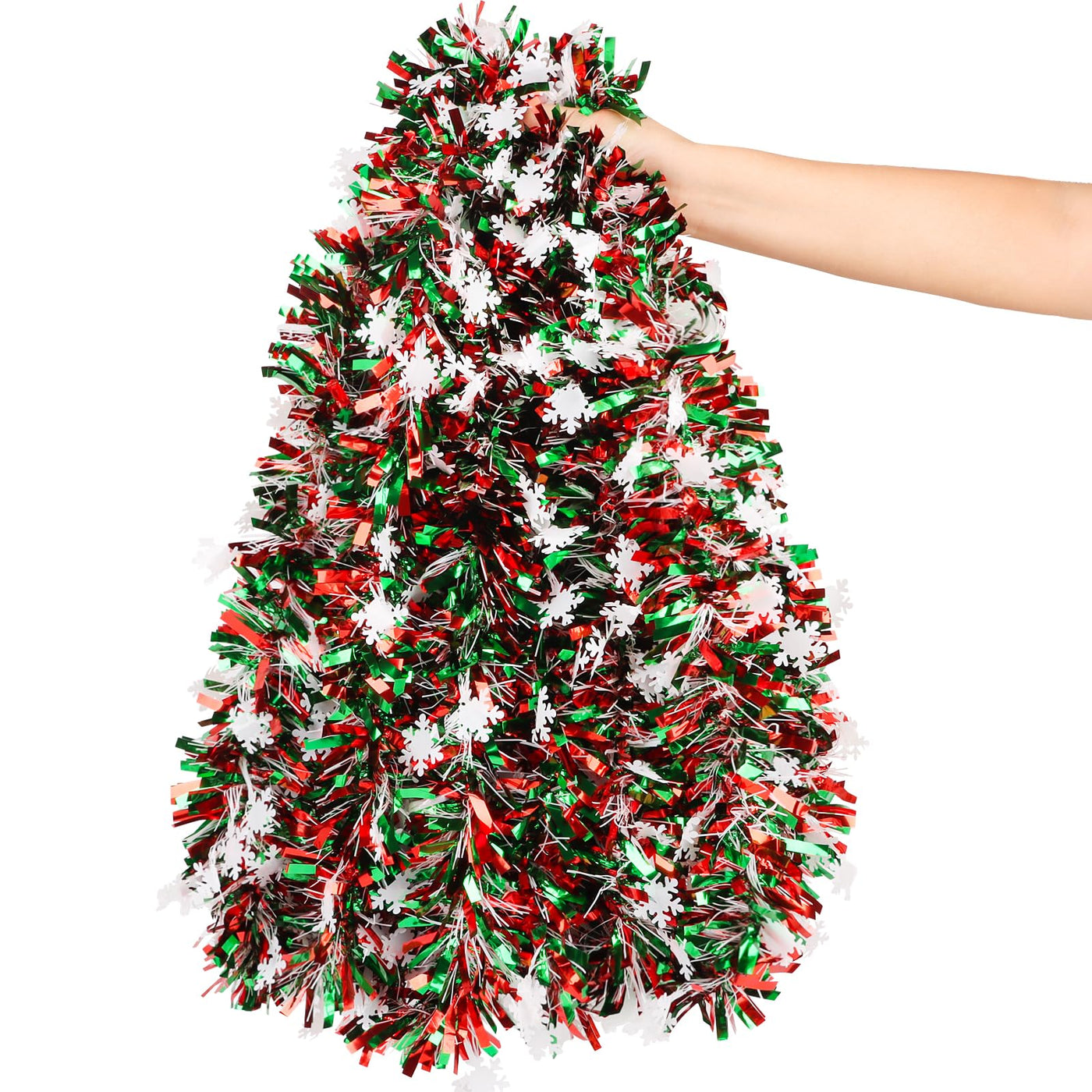 FOIMAS 33 Feet Christmas Tinsel Garland, Metallic Red and Green Christmas Garland with Snowflake Hanging Garland for Xmas Tree F