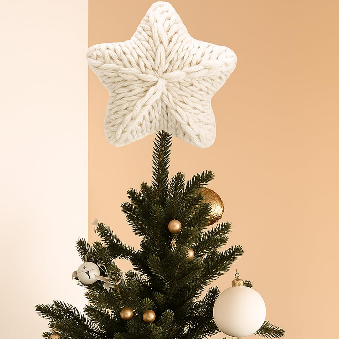 Gejoy Mini Christmas Knitted Star Tree Topper Rustic Natural Knitting Star 6 Inch Miniature Tree Topper for Christmas Home Decor