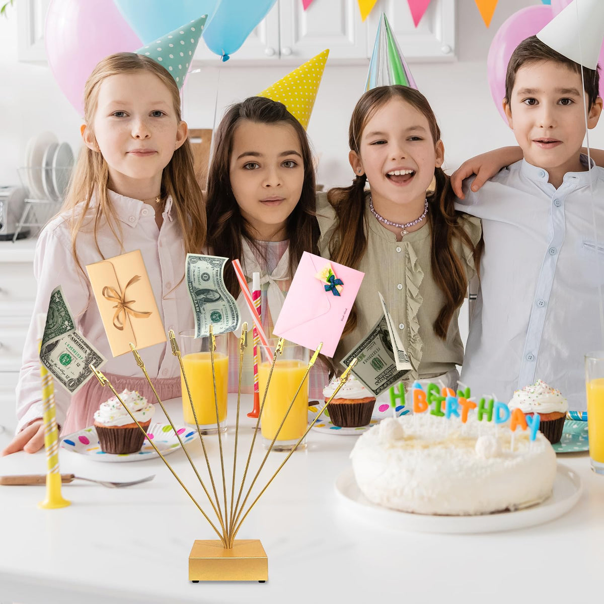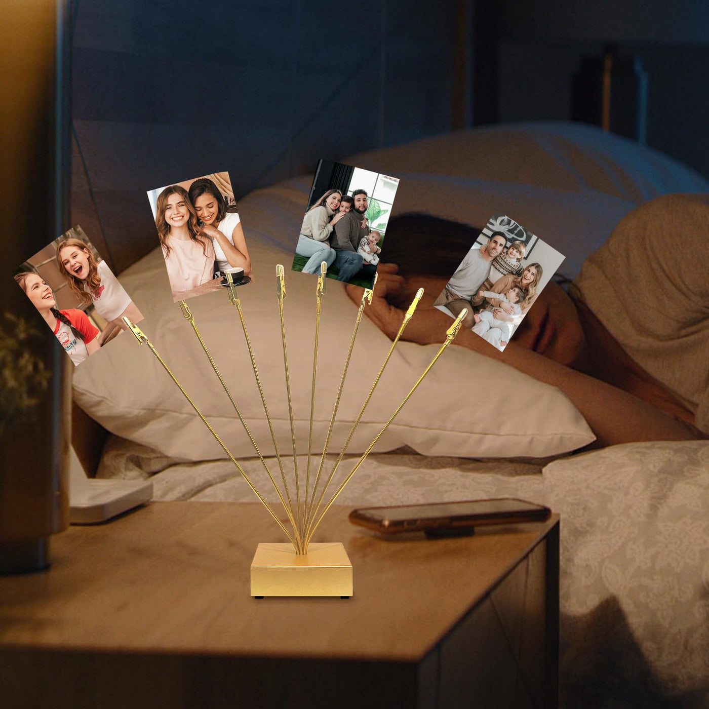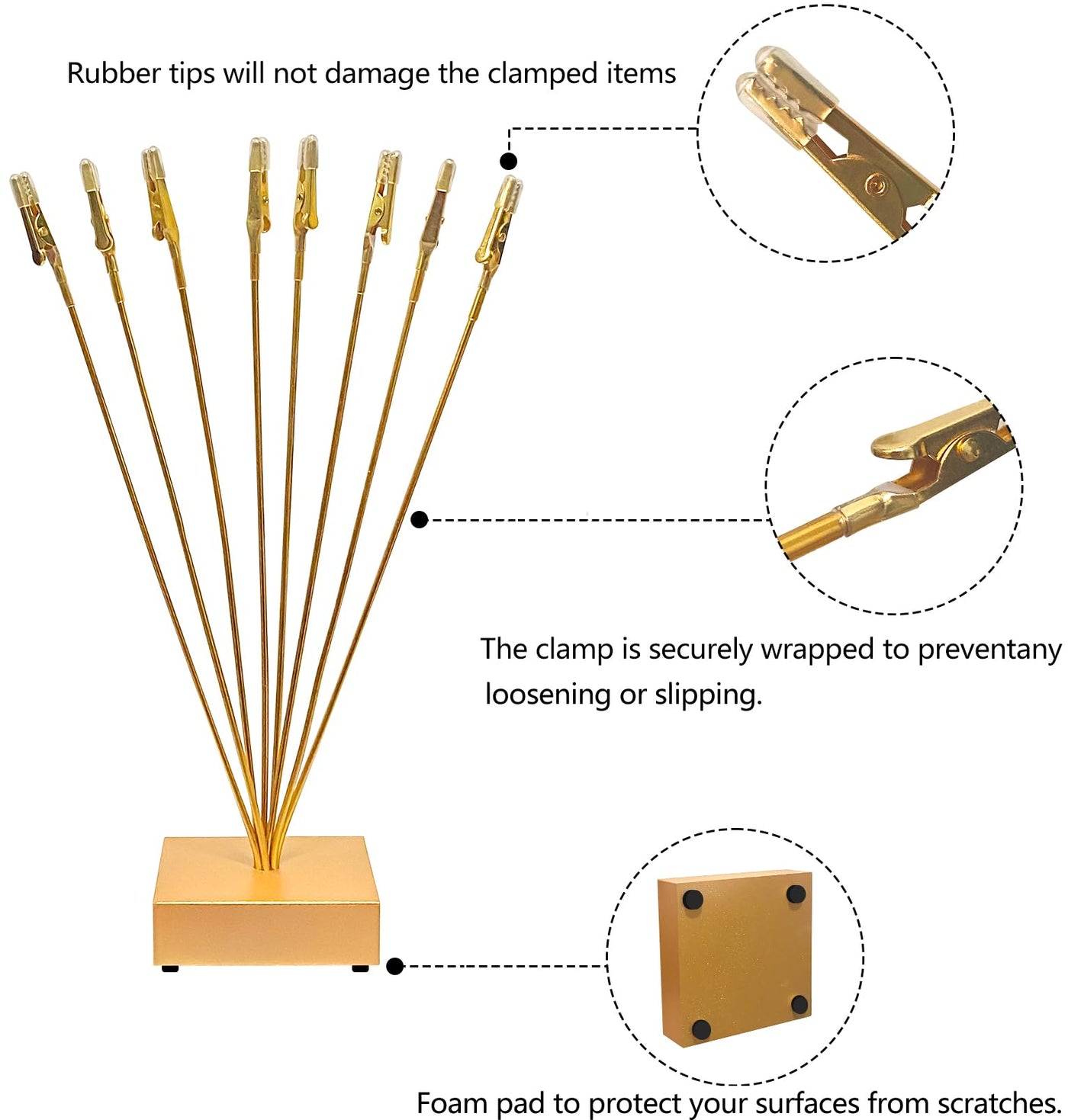 Gold Photo Tree Holder Clip Cube Base,8 - Branch Money Trees Gift Card Holder with Clips,Picture Holder Stand for Christmas Wedd