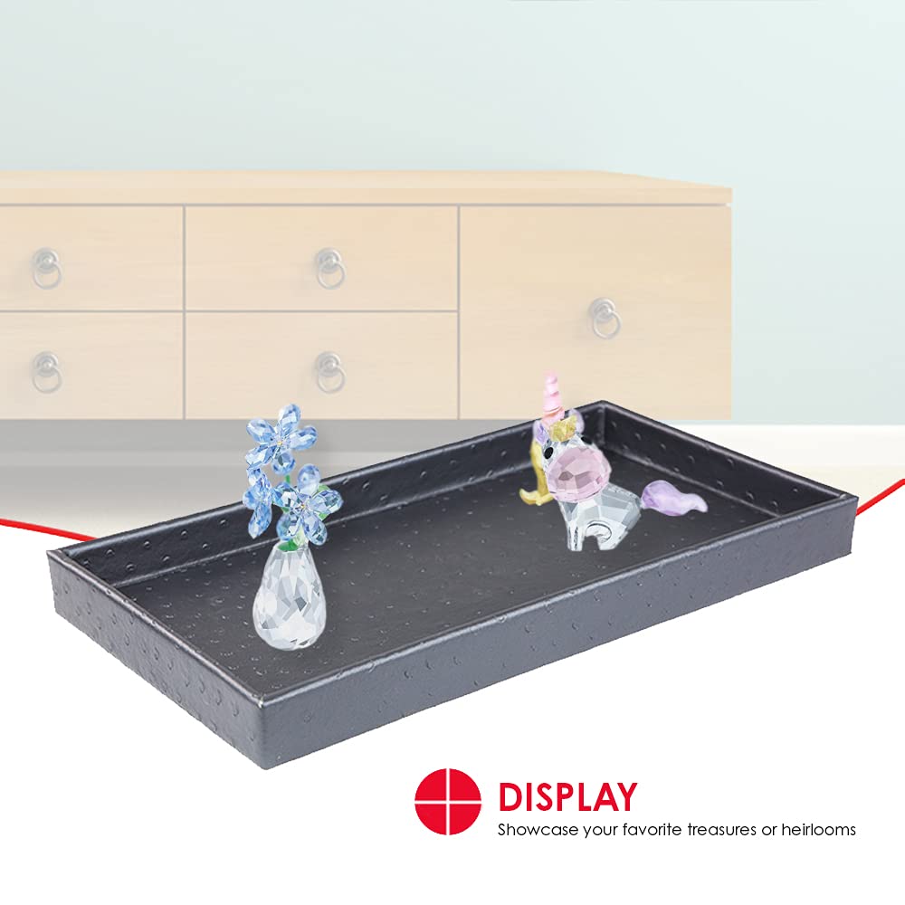 • Q: What can I use the Home Basics Leather Vanity Tray for? A: The Home Basics Leather Vanity Tray is designed for multi-use functionality. It's great as a decorative or vanity tray and can be used in various rooms including the bathroom, dressing table, or bedroom to organize personal grooming items.