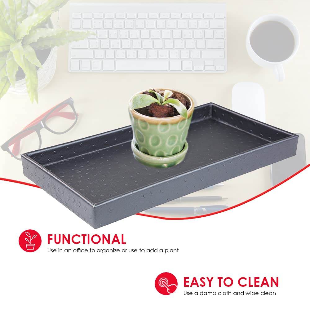 Home Basics Leather Vanity Tray, Decorative Multi-Purpose Rectangular Organizer For Dresser, Dressing Table, Bathroom & Bedroom,