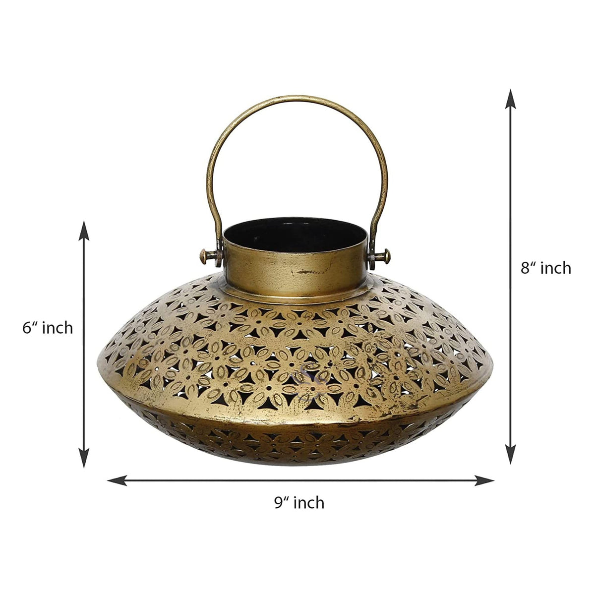 Iron Degchi Doop Stand & Tealight Candle Holder for Home Decor (Netted Style), Gold