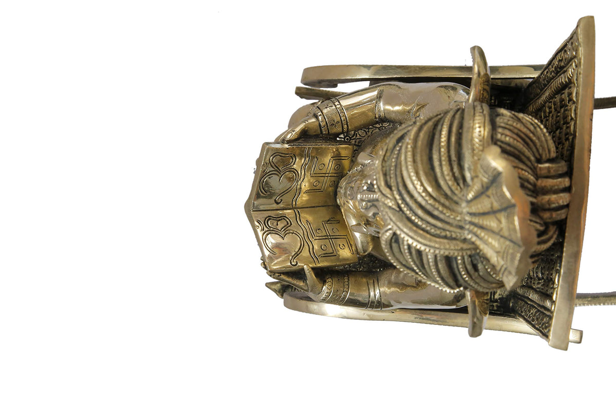 Kalarambh Brass Pan Ganesha/Ganesh/Ganpati Idol Murti Statue For Home Pooja Puja Mandir Decor Collectible Handicraft Art, Yellow, 9 X 7 X 12 Inch (L X W X H)