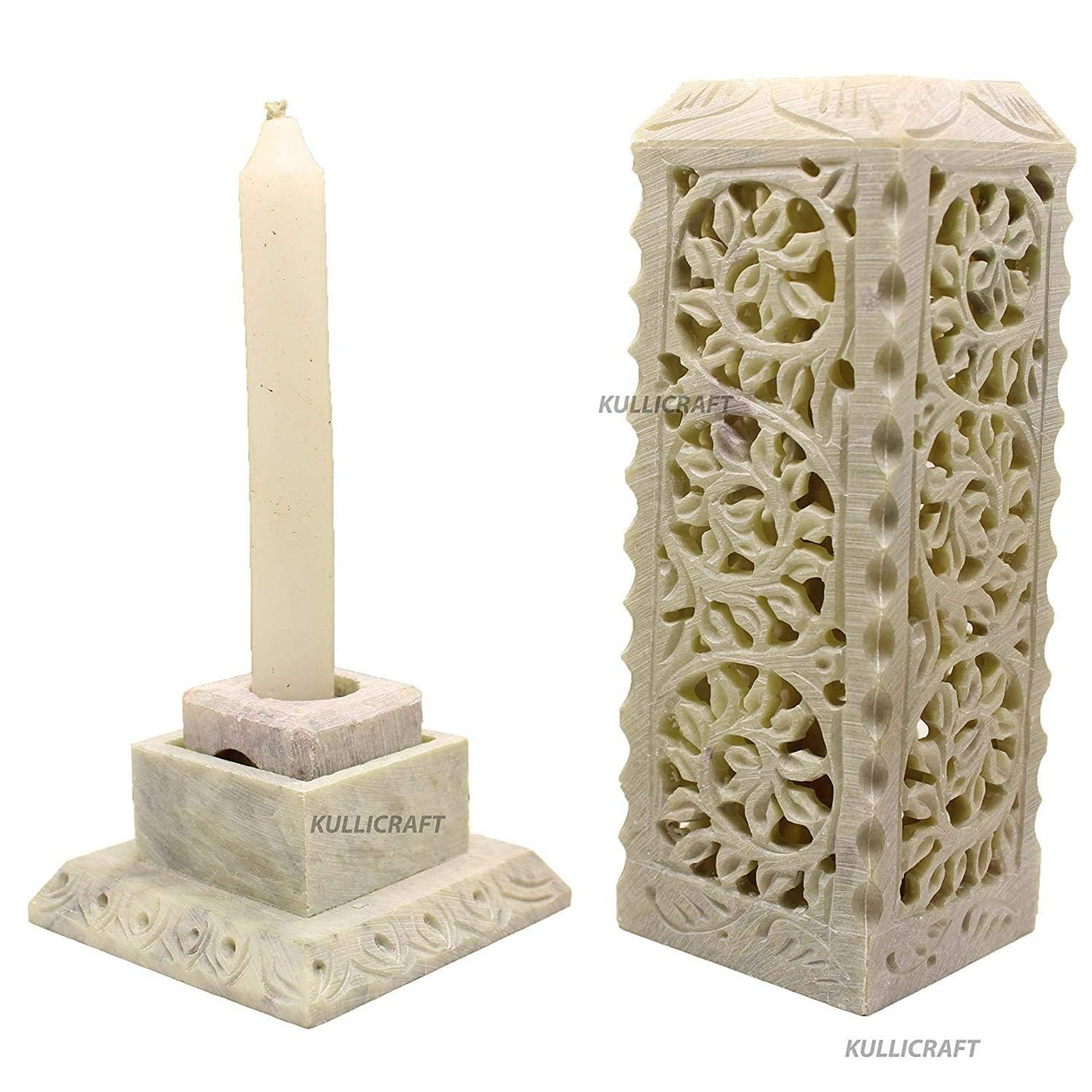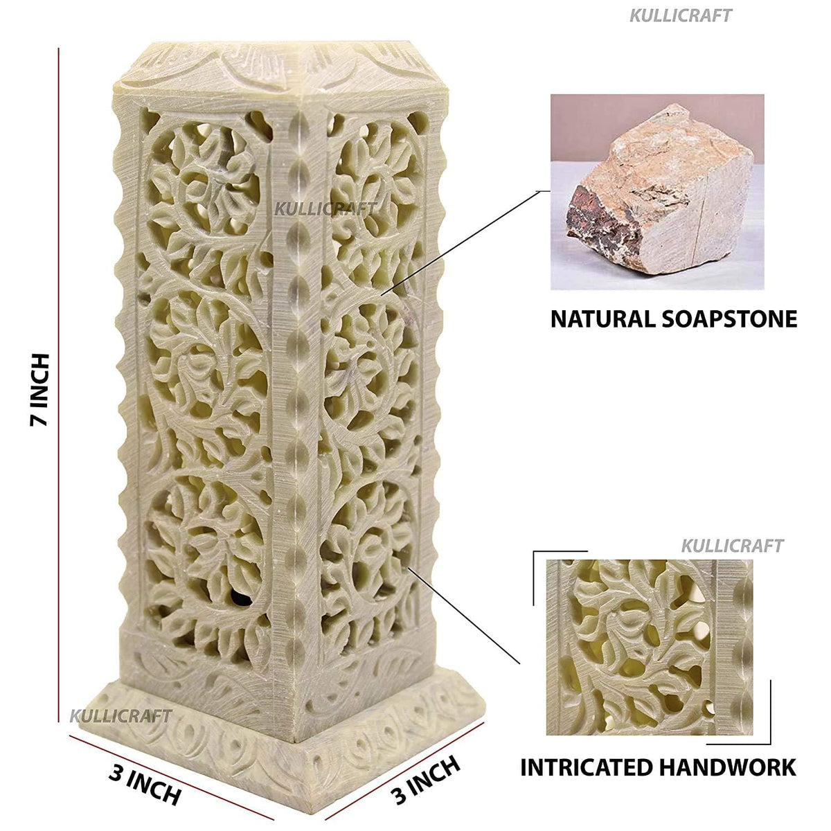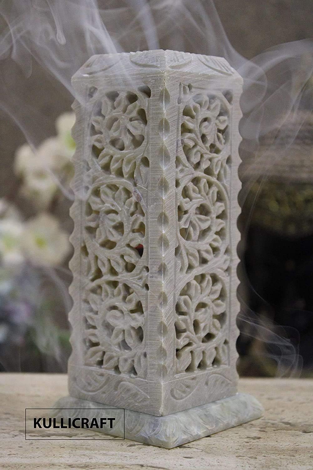 Kc Kullicraft Soapstone Marble Handcrafted Floral Carving Incense Agarbati Stand Holder For Puja With 6 Dhoop Batti