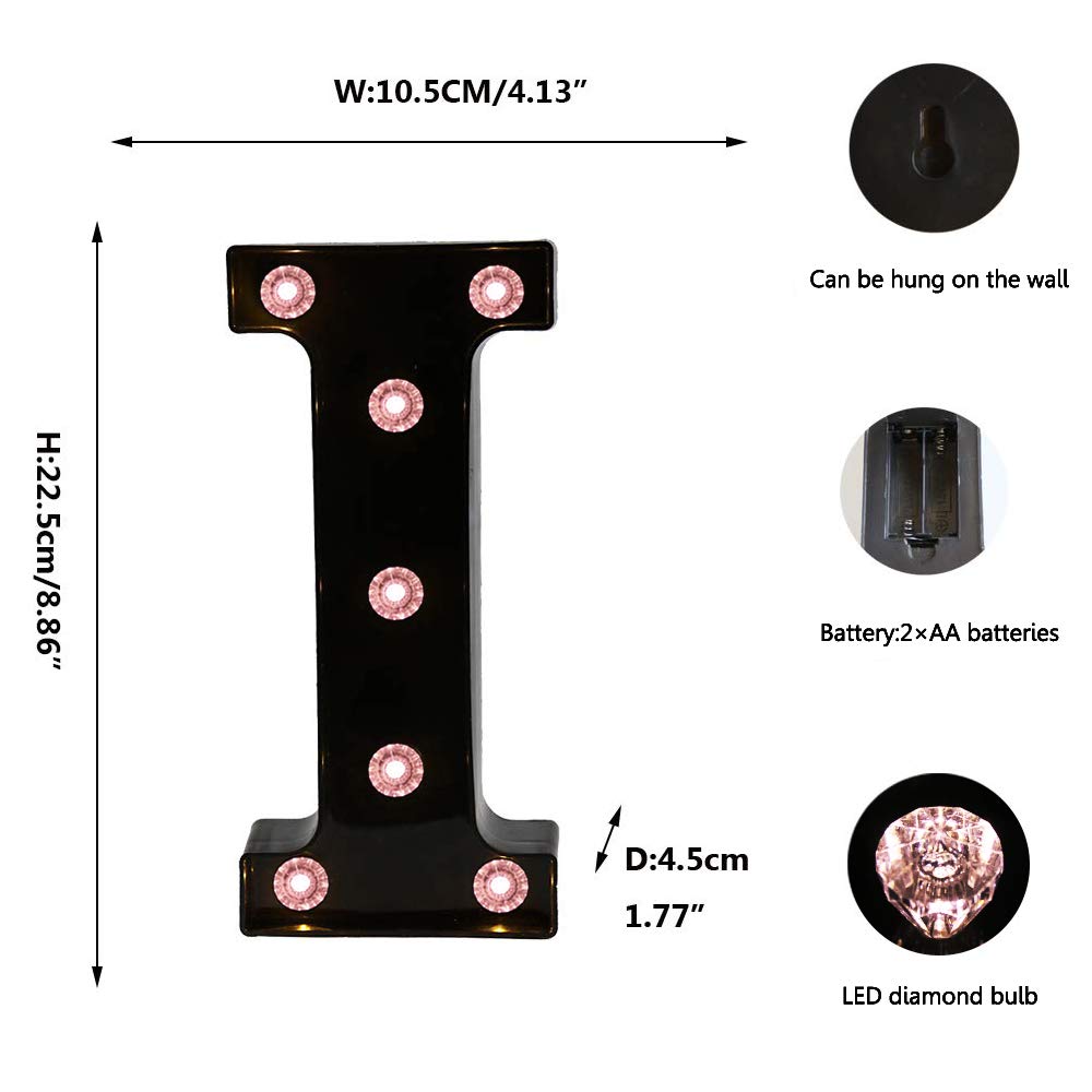 LED Black Alphabet Marquee Letters Sign Light Up Marquee Number Letter Lights Sign with Diamond Bulb for Night Light Home Bar Christmas Lamp Birthday Party Wedding Decoration I