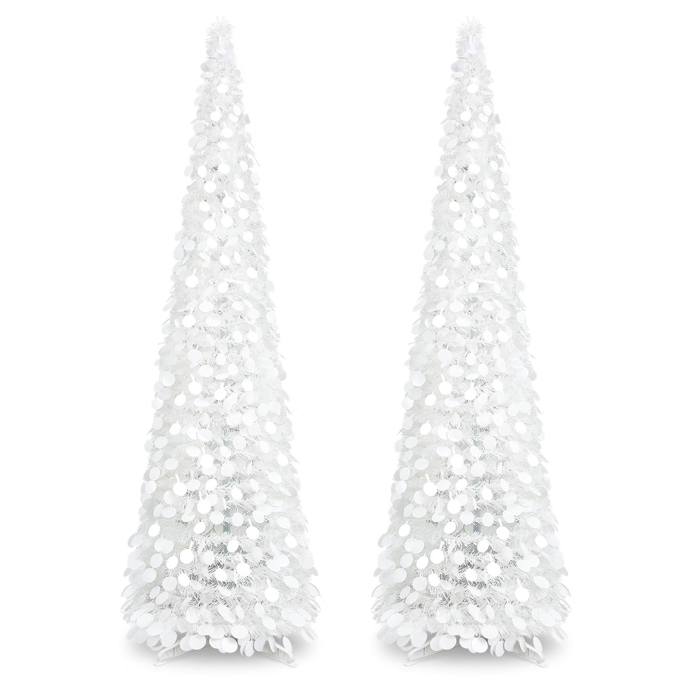 Leyndo 2 Pcs 5 ft Collapsible Artificial Christmas Tree Pop up White Sequined Tinsel Pencil Skinny Xmas Tree for Home Fireplace