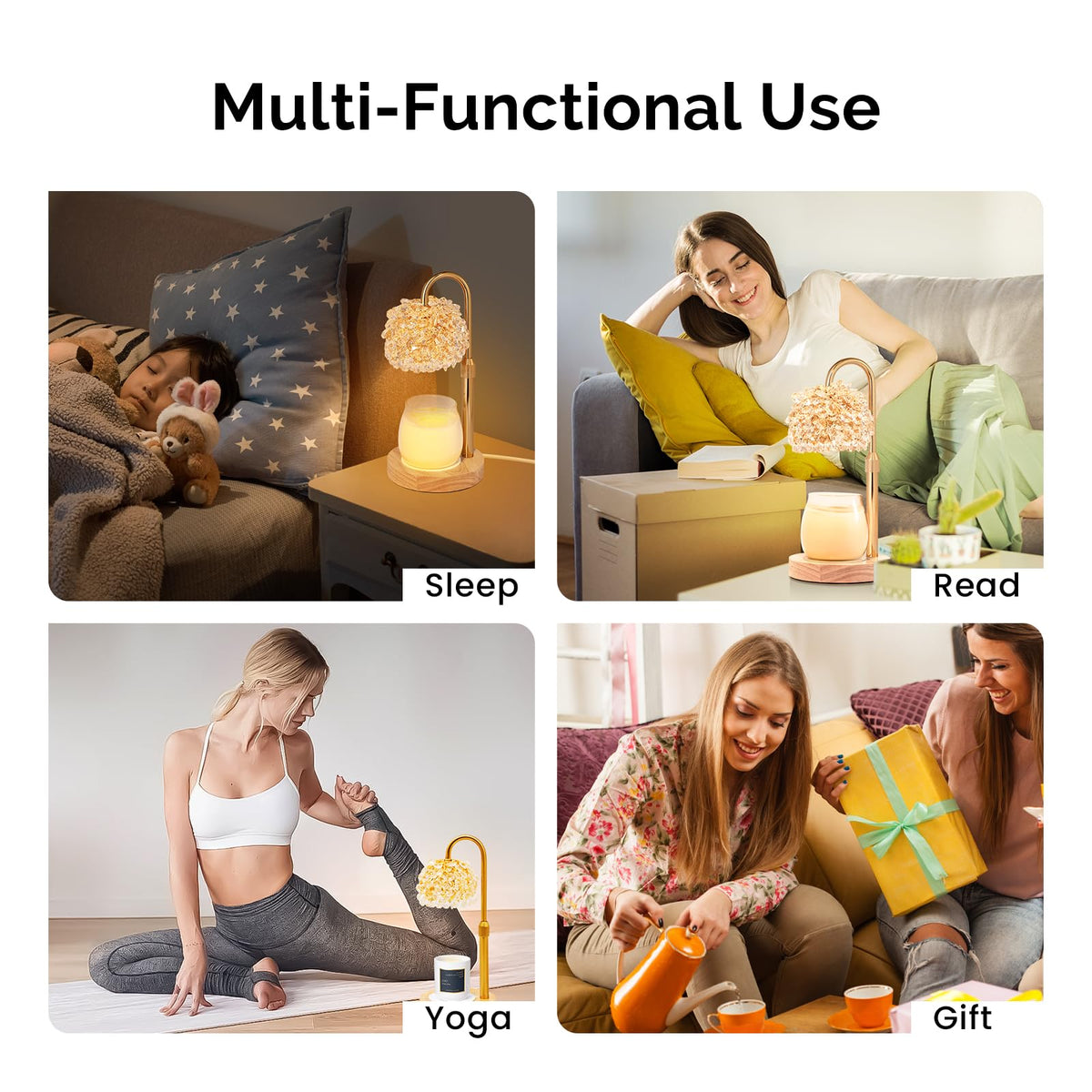 1. LOFTEK candle warmer lamp flower shape adopts top-down heating and melting technology, using GU10 halogen bulbs (including 2 replaceable bulbs in the packaging) to heat the scented candle and release pure fragrance instead of direct combustion, thus providing a safe, smoke-free, and environmentally friendly way to relax. 2. This candle light comes with a smart timer and dimmer, allowing you to set the 2H/4H/8H timer and adjust the brightness level of the candle light to meet different needs. You can also control the melting speed of the candle. The fragrance of candle lights can last up to twice the burning time, making it perfect for nighttime sleep. 3. LOFTEK adjustable height candle lamps warmer has an adjustable pole height that is suitable for all jar candle sizes, solving concerns about the appropriate size of candles. In addition, the addition of anti slip pads ensures stability and safe use with can candles? 4. Fashionable home decoration candle lamp, with a natural wooden base and rust proof metal lamp body in gold color. The flower shaped crystal glass lampshade combines classic and modern design, making this wax melt warmer lamp very suitable for use in bedrooms, living rooms, offices, yoga studios, and more. It creates a comfortable atmosphere while also serving as an exquisite decorative light. 5. The perfect gift choice, LOFTEK candle lamps is a carefully selected gift for your loved ones on special occasions such as Mother's Day, Valentine's Day, Christmas, etc. After sales quality assurance, if you encounter any problems, our professional customer service team is ready to provide solutions within 24 hours. Let you shop worry free.
