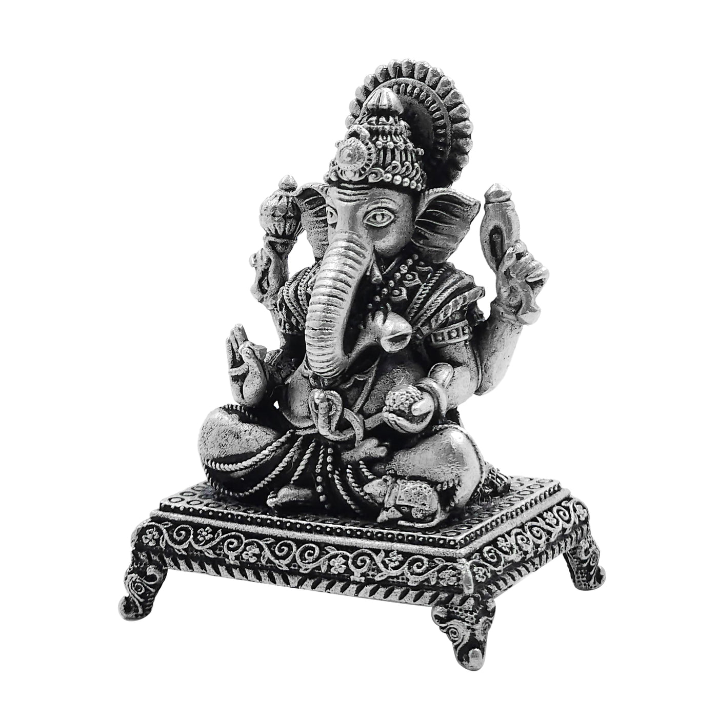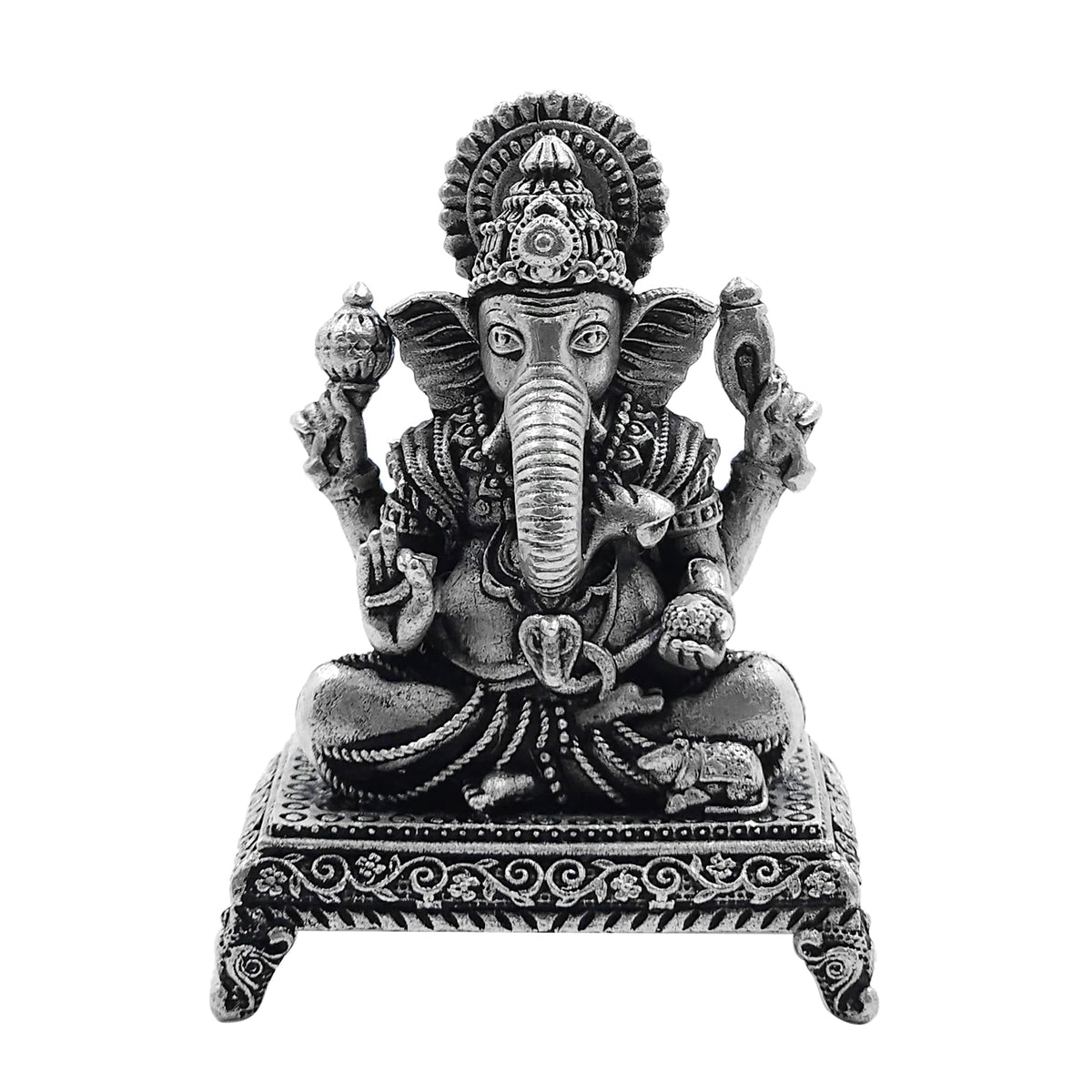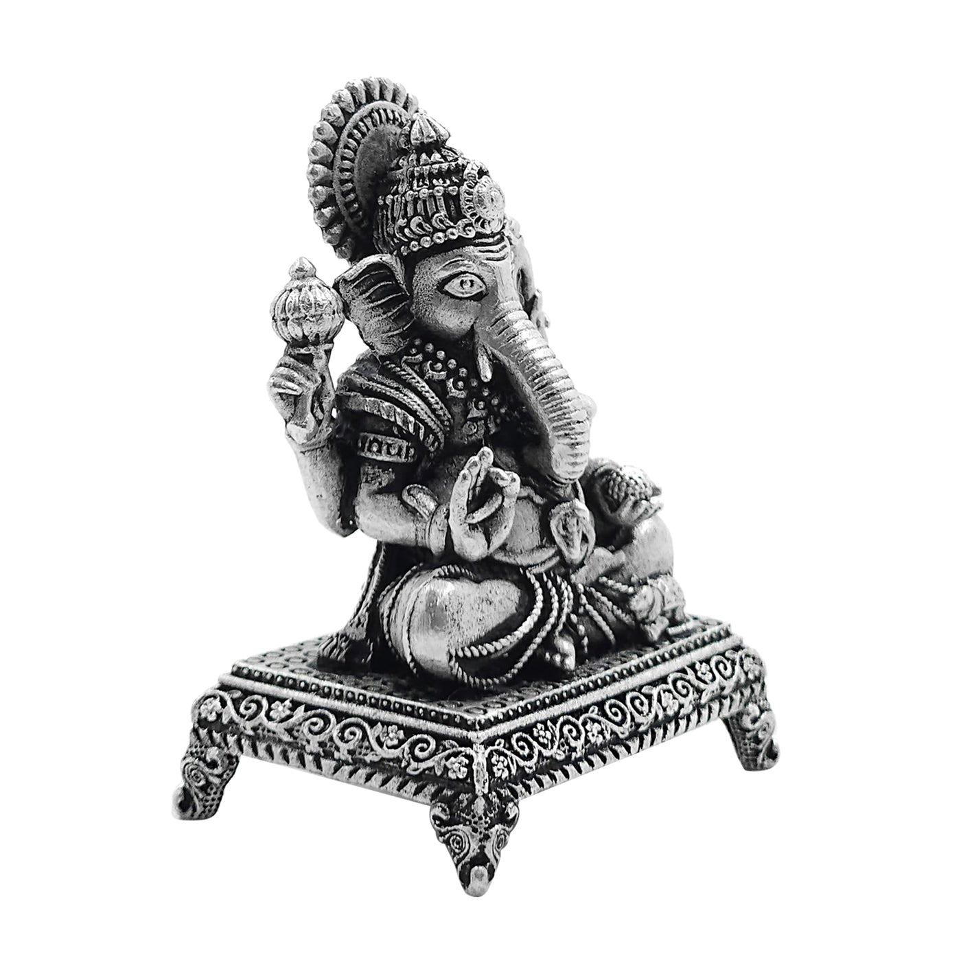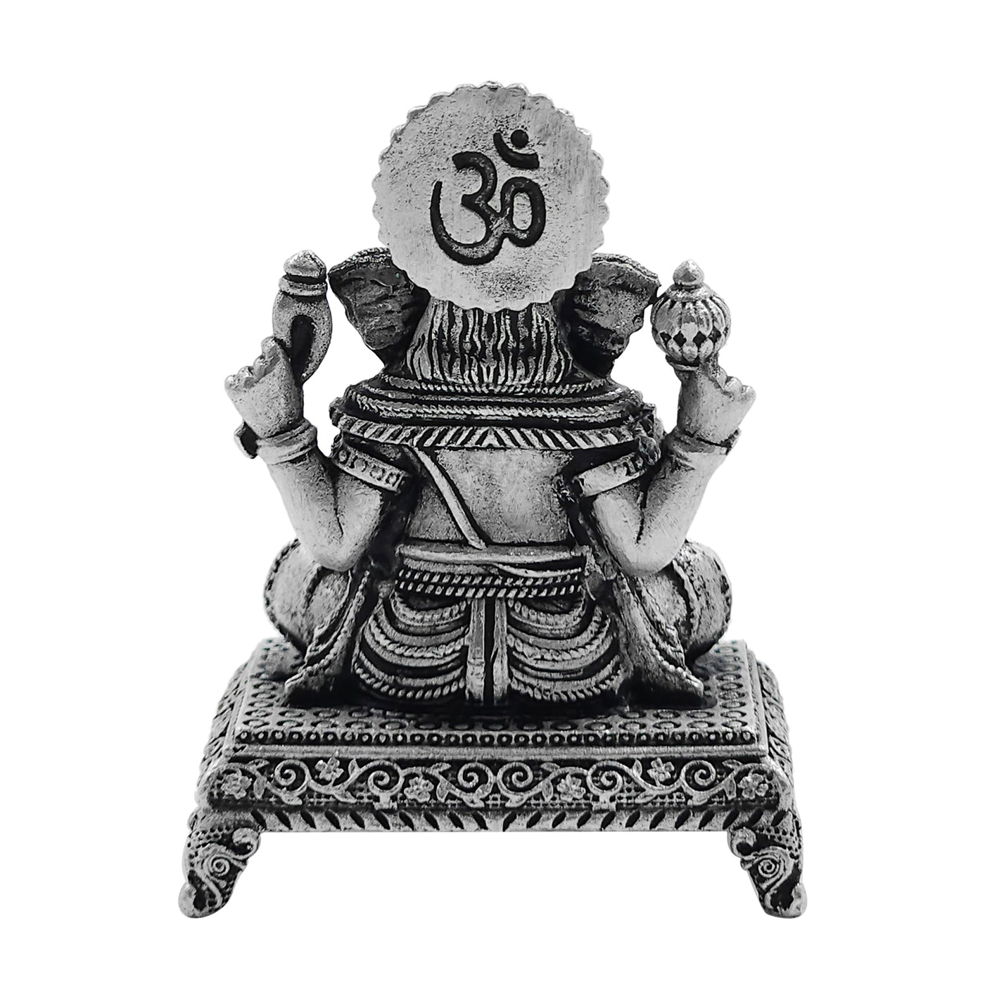 Maa Silver Pure Silver Lord Ganesh/Ganpatiji Semi-Solid Idol/Murti With Paat & Antique Oxidized Finish Perfect For Pooja/Puja &
