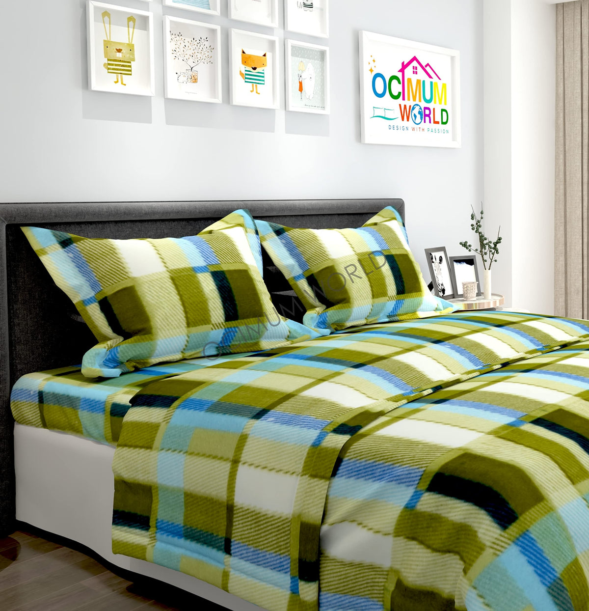 Morado Woollen Heavy Fleece Warm 210 Tc Checkered Double Bedsheet With Two Pillow Covers With Zipper For Winters (90X100 Inches,
