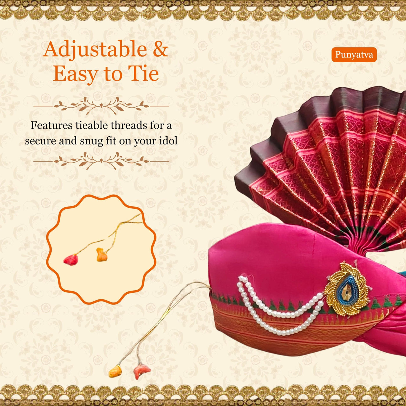 Punyatva Ganpati Feta Mukut (Turban, Silk, Pink) / Ganesh Pheta/Gauri Ganpati Festival Decoration Accessories/Ganpati Jewellery/