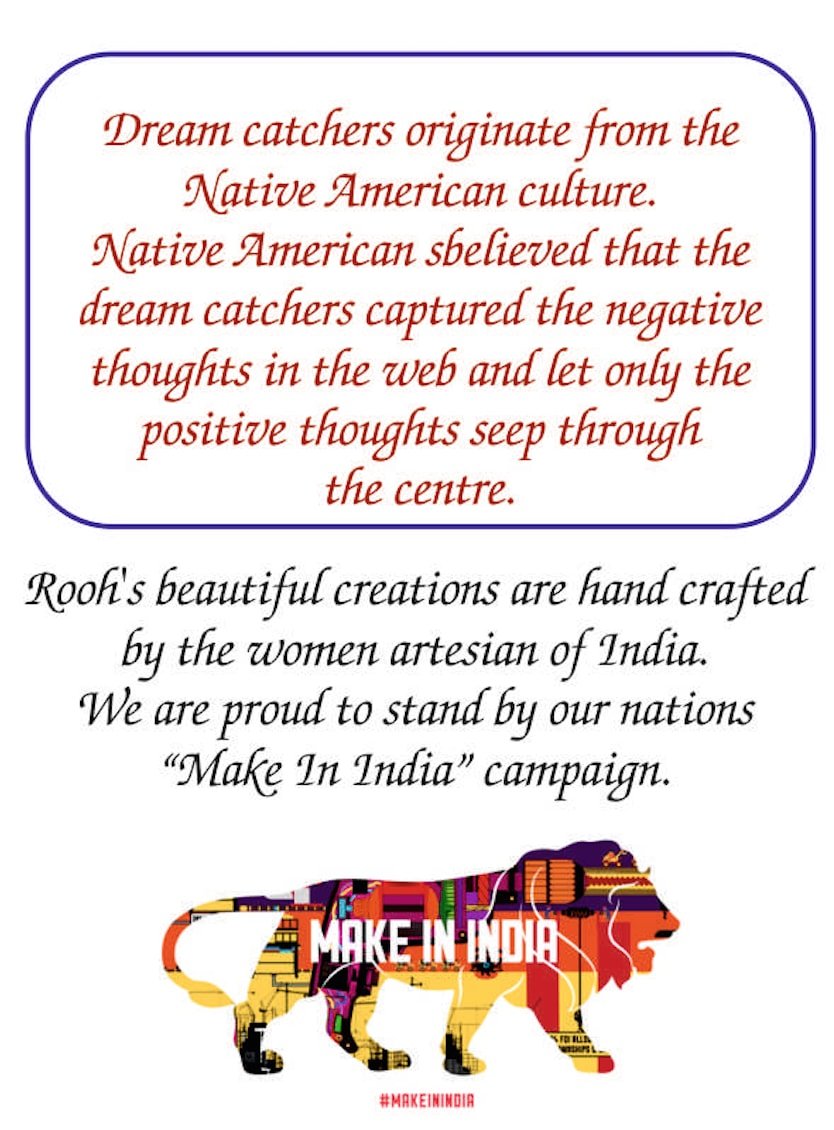 At Rooh each Dream Catcher is handwoven with the intention of creating love and positivity. This attractive-looking dream catcher is intended to protect the sleeping individual from negative dreams, while letting only positive dreams pass through. We have carefully merged art with benefits of colour psychology that will ensure happiness and optimism.