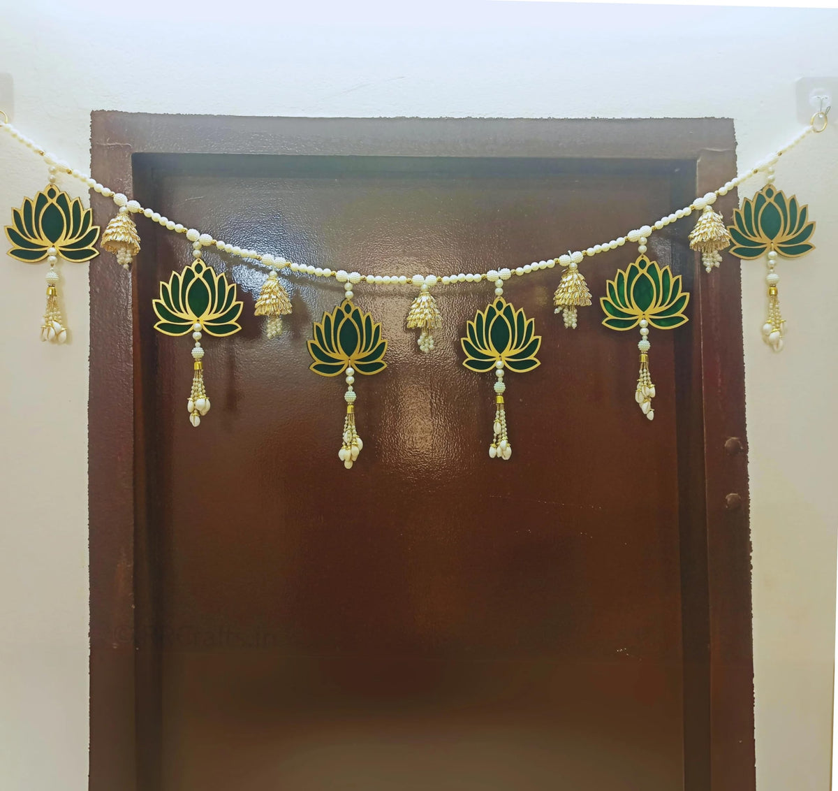 Rr Crafts Handmade Door Hanging Dark Green Lotus Style Door Bandarwal Toran,Diwali Ganesh Pooja New Year Inauguration Wedding Fe