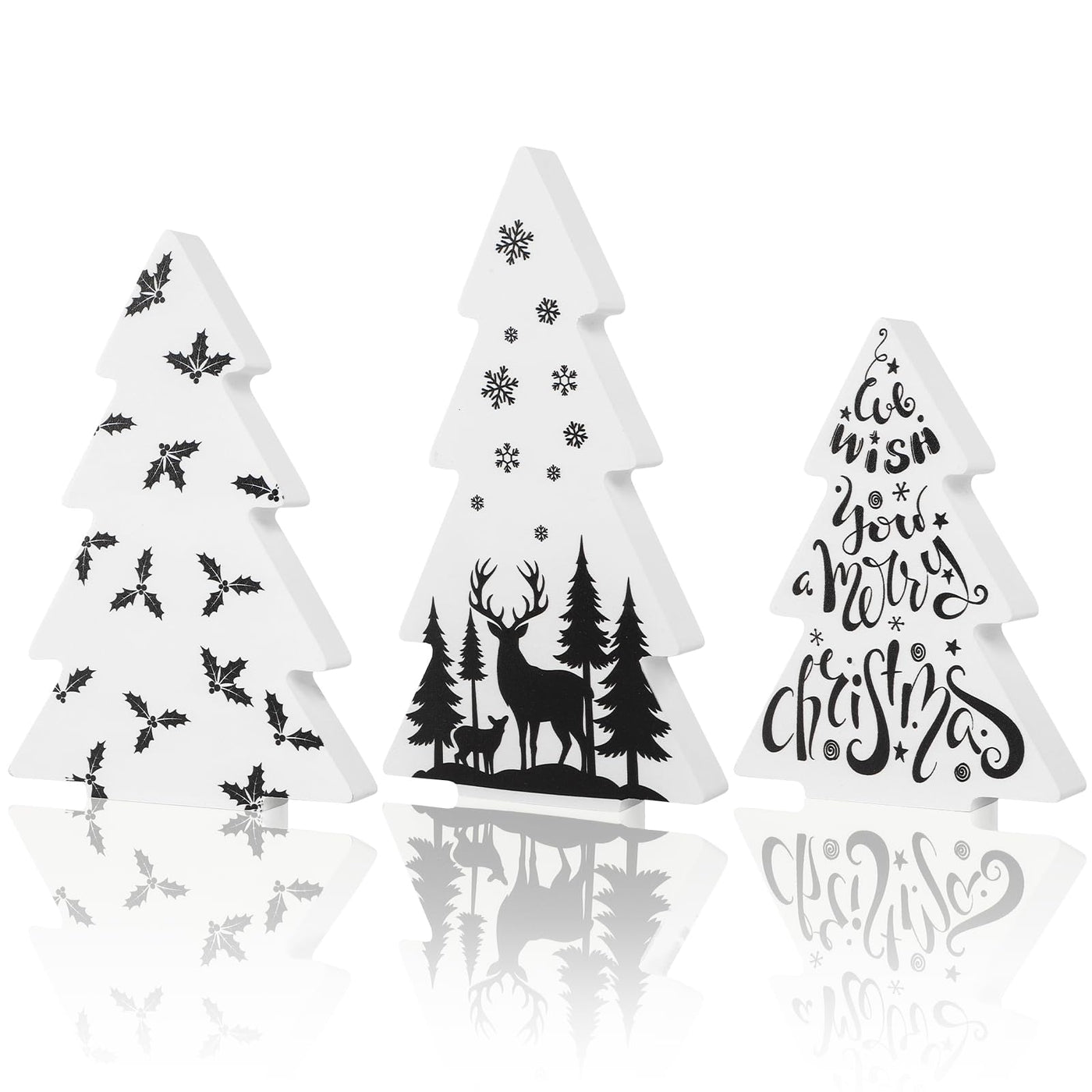 Sereliy 3 Pieces Christmas Tree Wooden Signs Black White Xmas Tiered Tray Decor for Christmas Home Tabletop Party Decor (Elk)