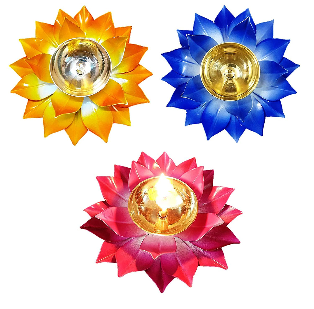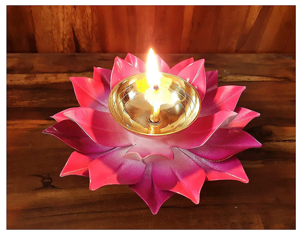 Srajan Brass Lotus Diya for Puja Pink | Lotus Diya Pooja Oil Lamp - Diwali Home Decoration Items,Metal Handpainted Deepak -Home