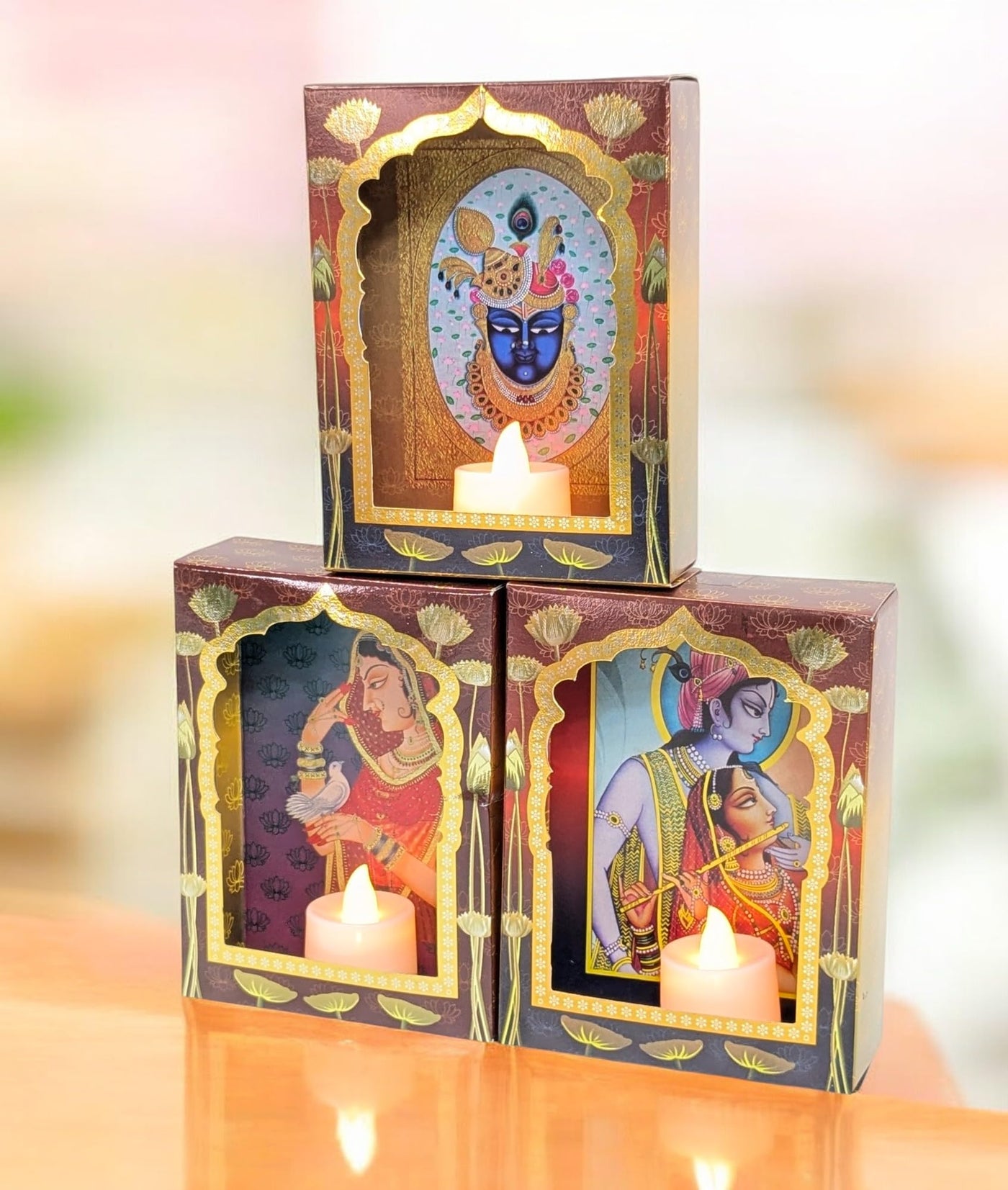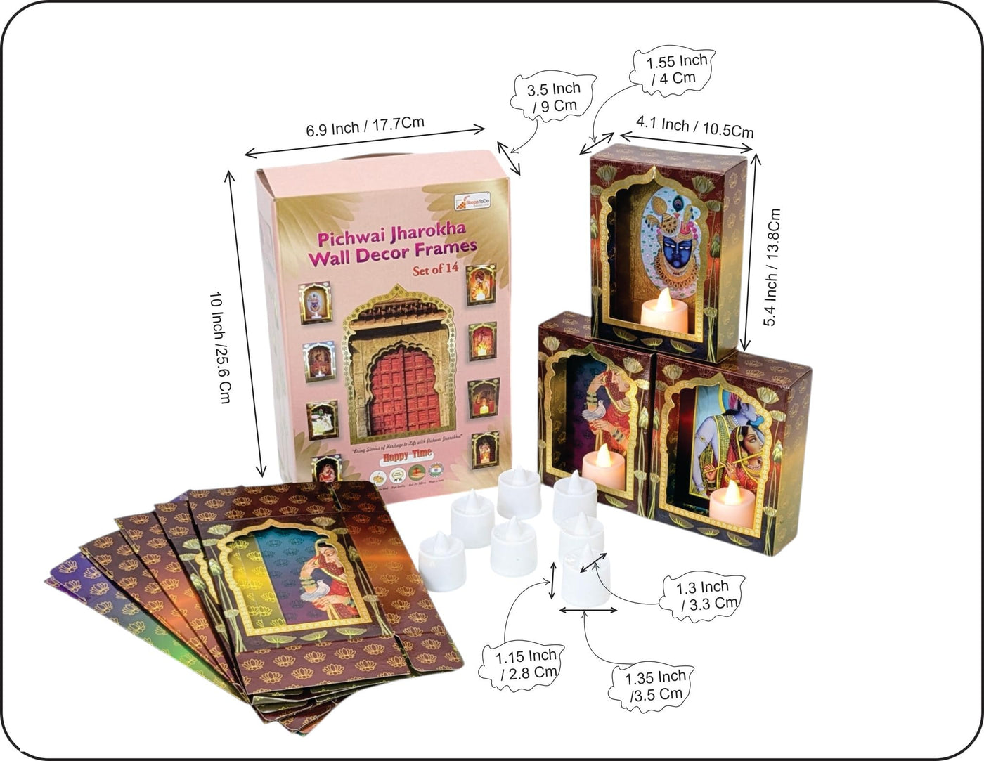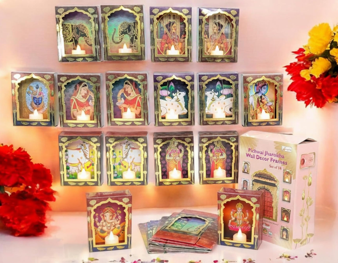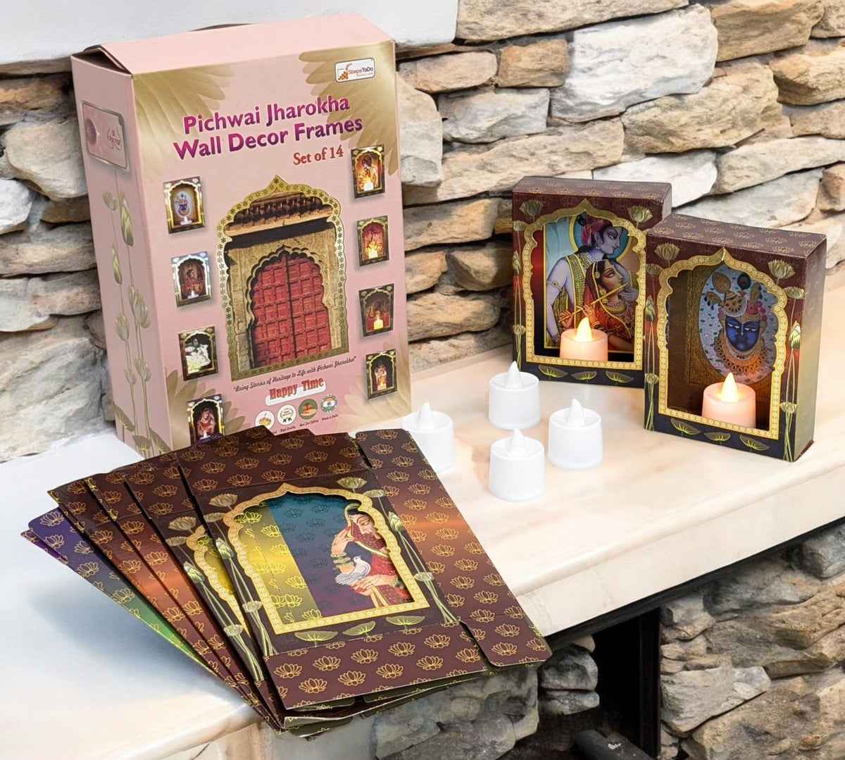 StepsToDo Pitchwai Jharokha Wall Dcor Box Frames (Pack of 14) Deep Deewar With LED Candle, Jharokha Style Wall & Home Decor for