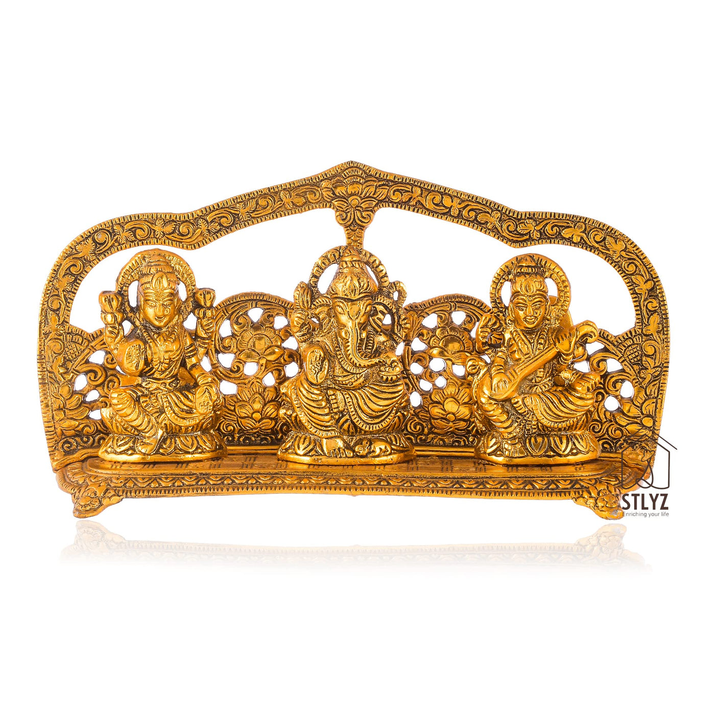 Stlyz Brass Laxmi Ganesh Saraswati Idol Statue Showpiece For Home Decor, Decorative Ganpati Laxmi Saraswati Ji Statue Murti Figu