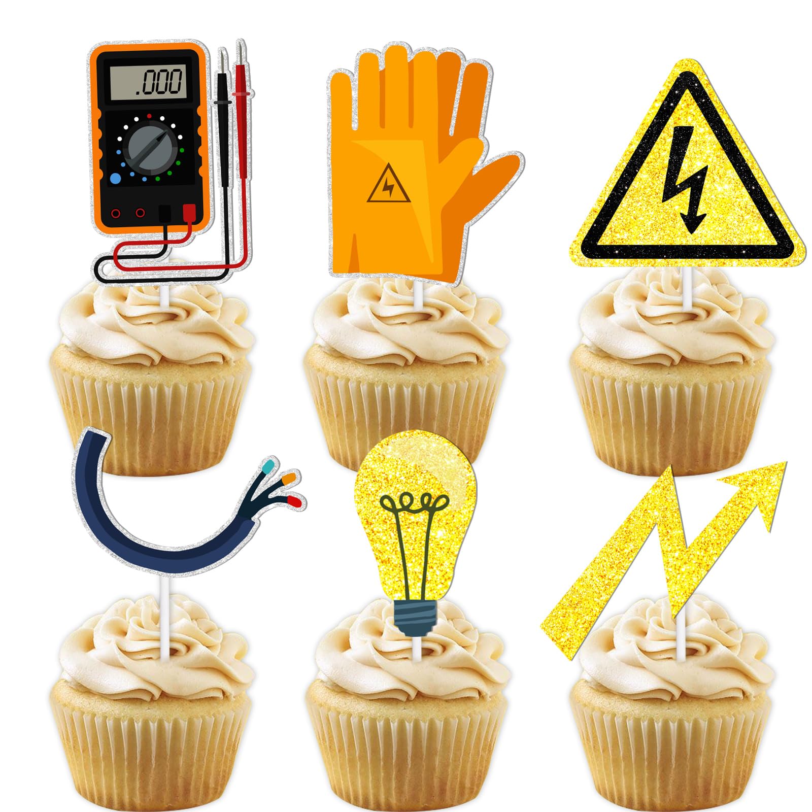 • Q: Do these cupcake toppers come in different designs? A: This product features a specific electrician lineman theme, but variations may be available in other listings or collections.