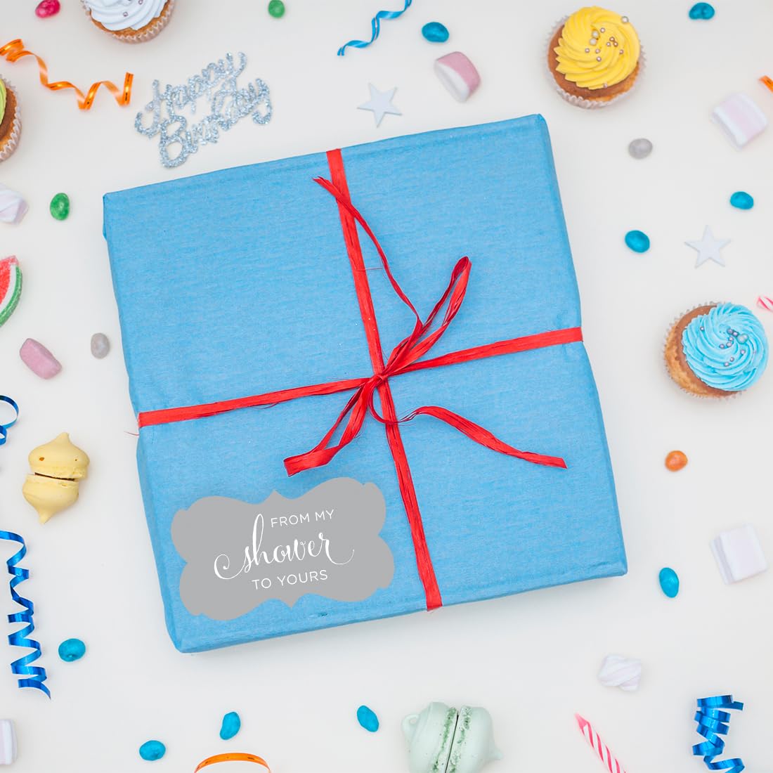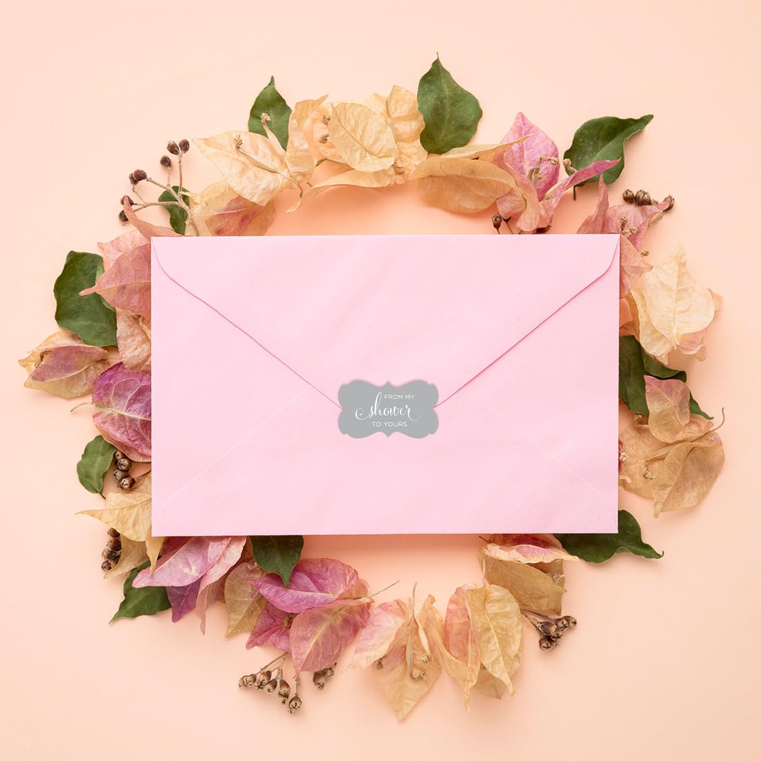 Andaz Press Baby and Bridal Wedding Shower Fancy Frame Label Stickers from My Shower to Yours Gray 36-Pack