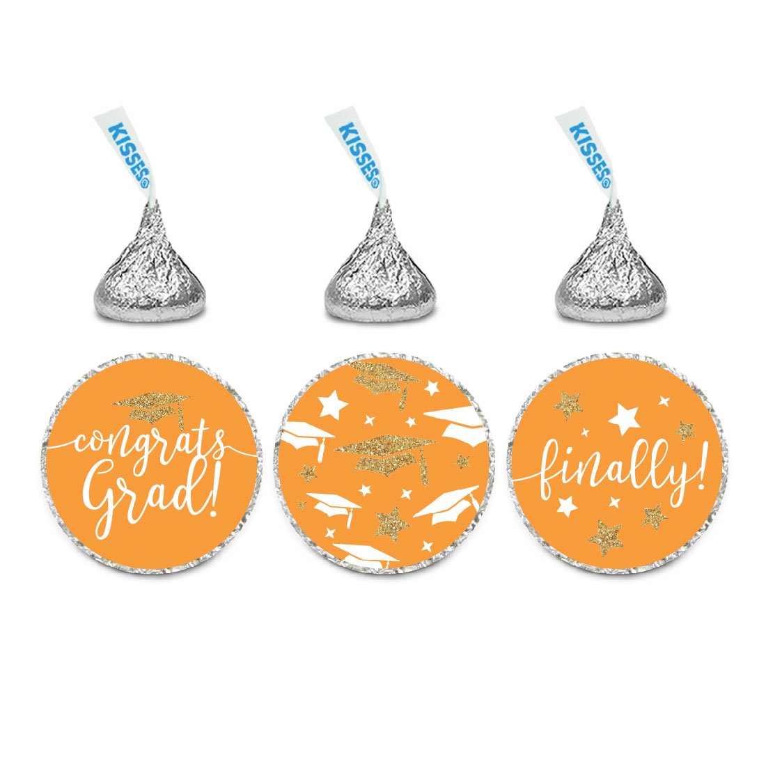 Andaz Press Orange And Gold Glittering Graduation Party Collection, Chocolate Drop Label Stickers Trio, 216-Pack, Fits Kisses Pa