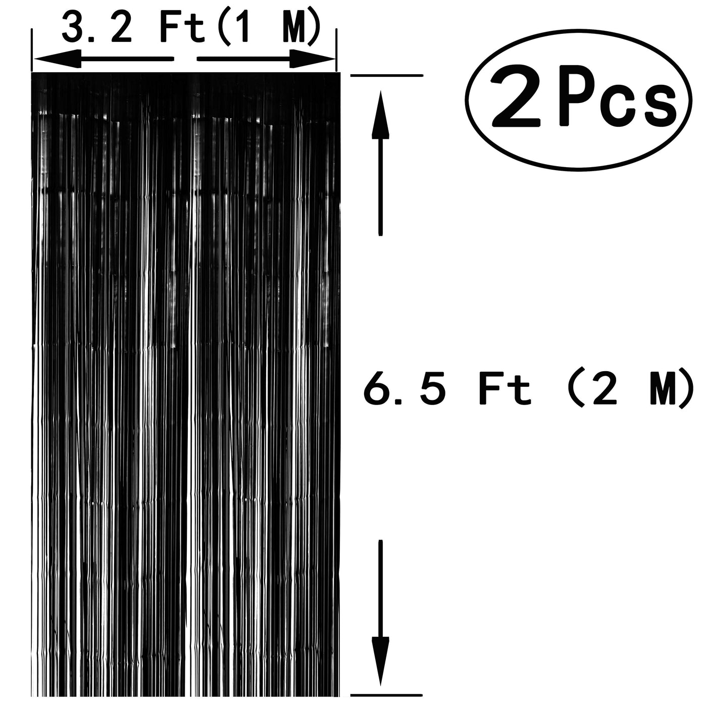 - Q: What are the dimensions of the Black Orange Party Foil Curtains? A: Each curtain measures 3.2 feet wide by 6.5 feet long.