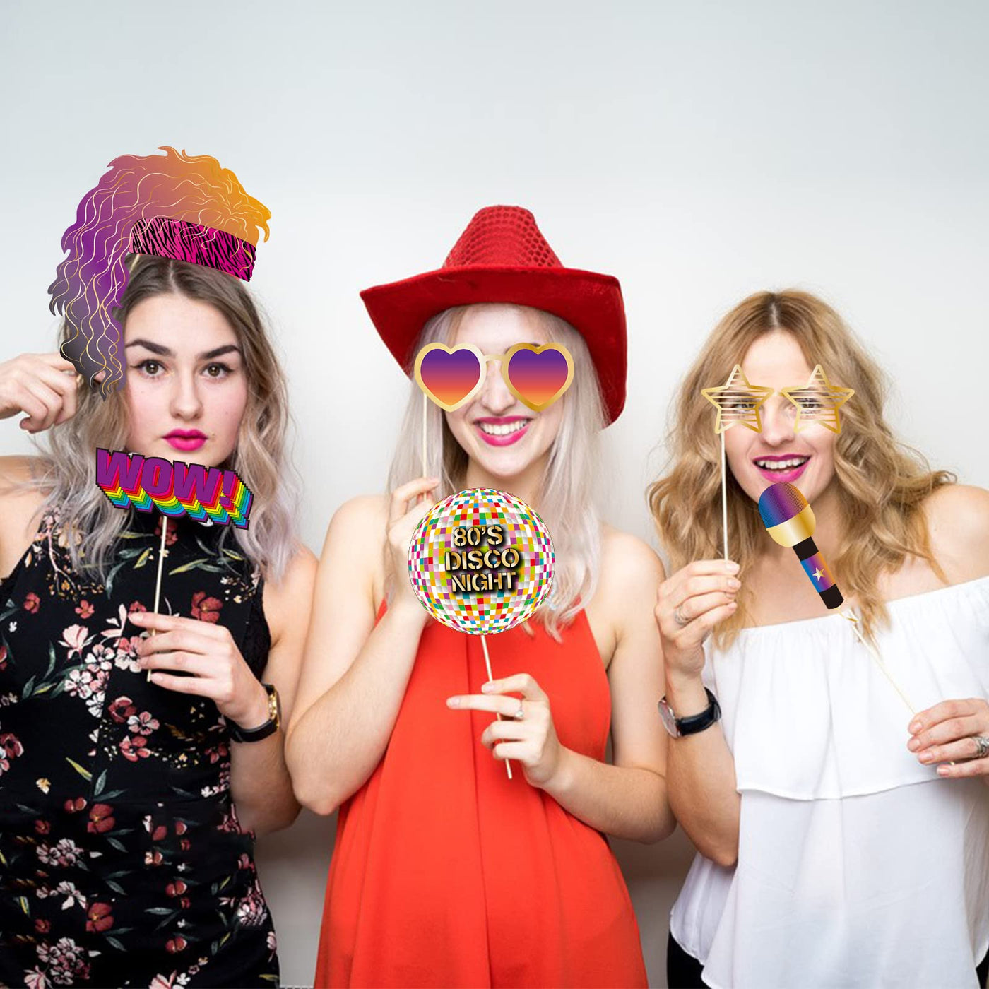Brt Bearingshui 80S Photo Booth Props, Retro 80'S Photo Prop Set, Throwback 80'S Photo Booth Prop Set 1980'S Theme Party Decorat