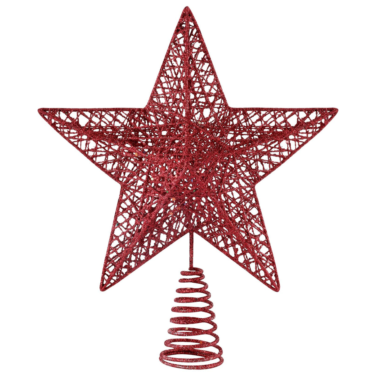 Christmas Tree Toppers Xmas Glitter Red Hollow Star Treetop Topper for Christmas Tree Decoration