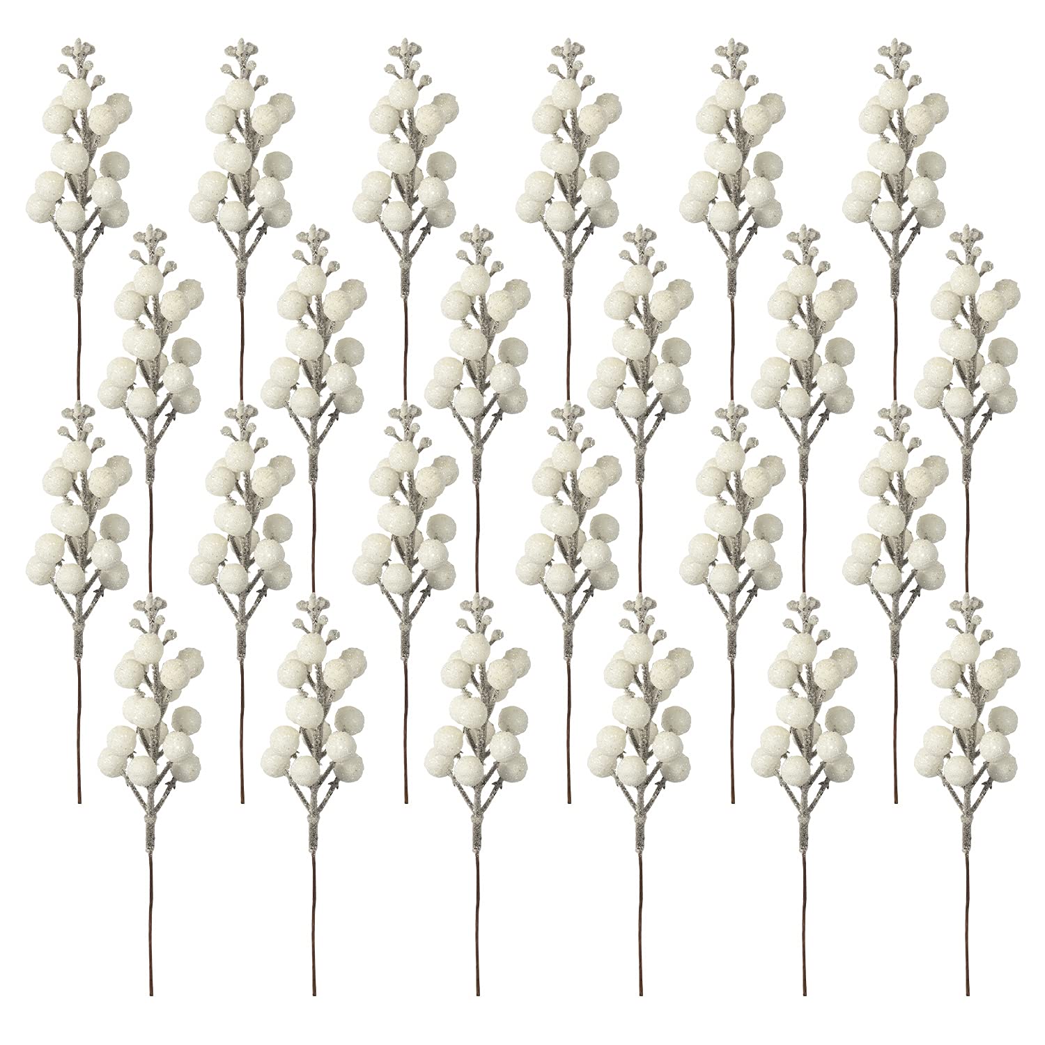 Crafare 24 Pack 7.5Inch Christmas Glitter Berries Stems Artificial Christmas Picks for Christmas Tree Ornaments DIY Xmas Wreath Crafts Holiday and Home Decor White