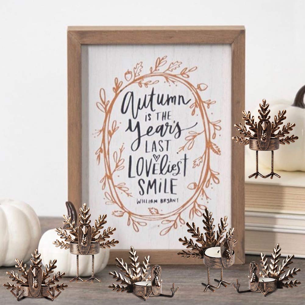 FORUP 6 Pack Metal Turkey Tea Light Candle Holders, Thanksgiving Candle Holder, Thanksgiving Home Table Decoration