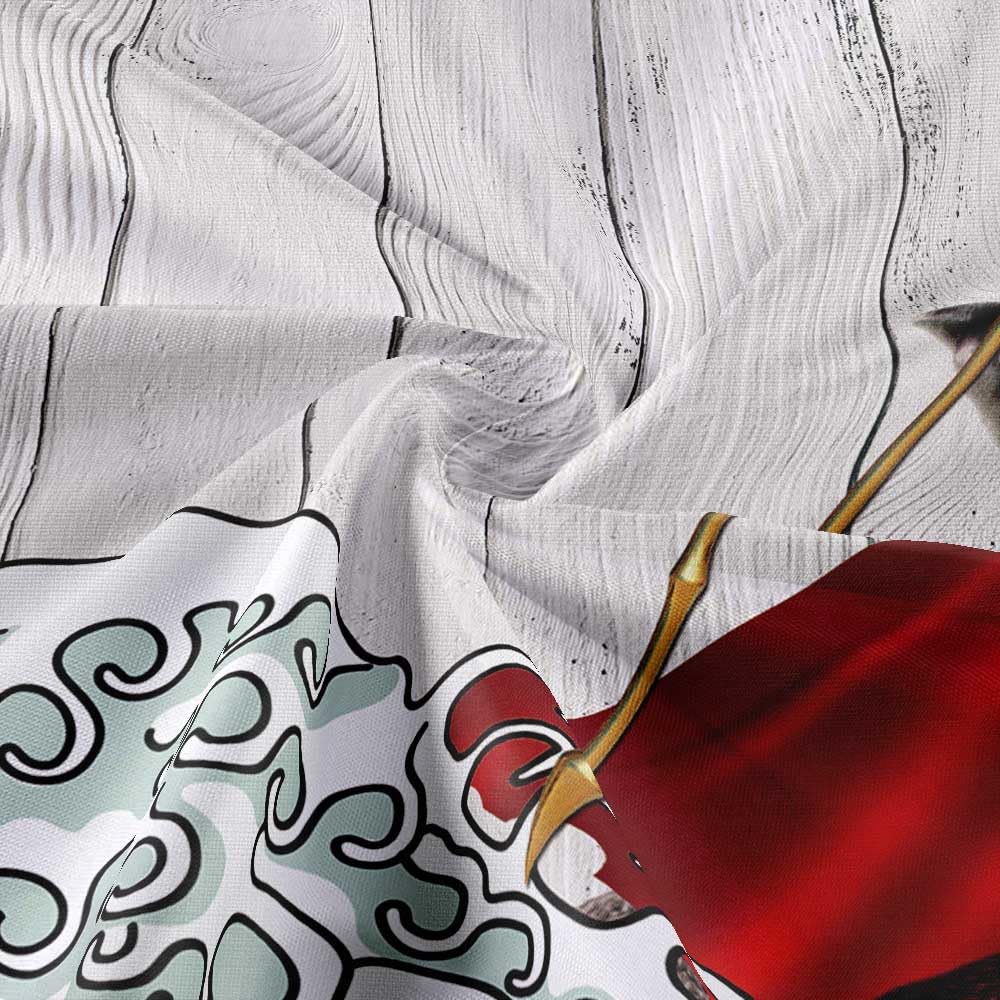 Funny Cat Shower Curtain, Cool Cat Dinosaur Japanese Ocean Wave Shower Curtain, Cat Riding Dinosaur Fun Shower Curtain Nautical