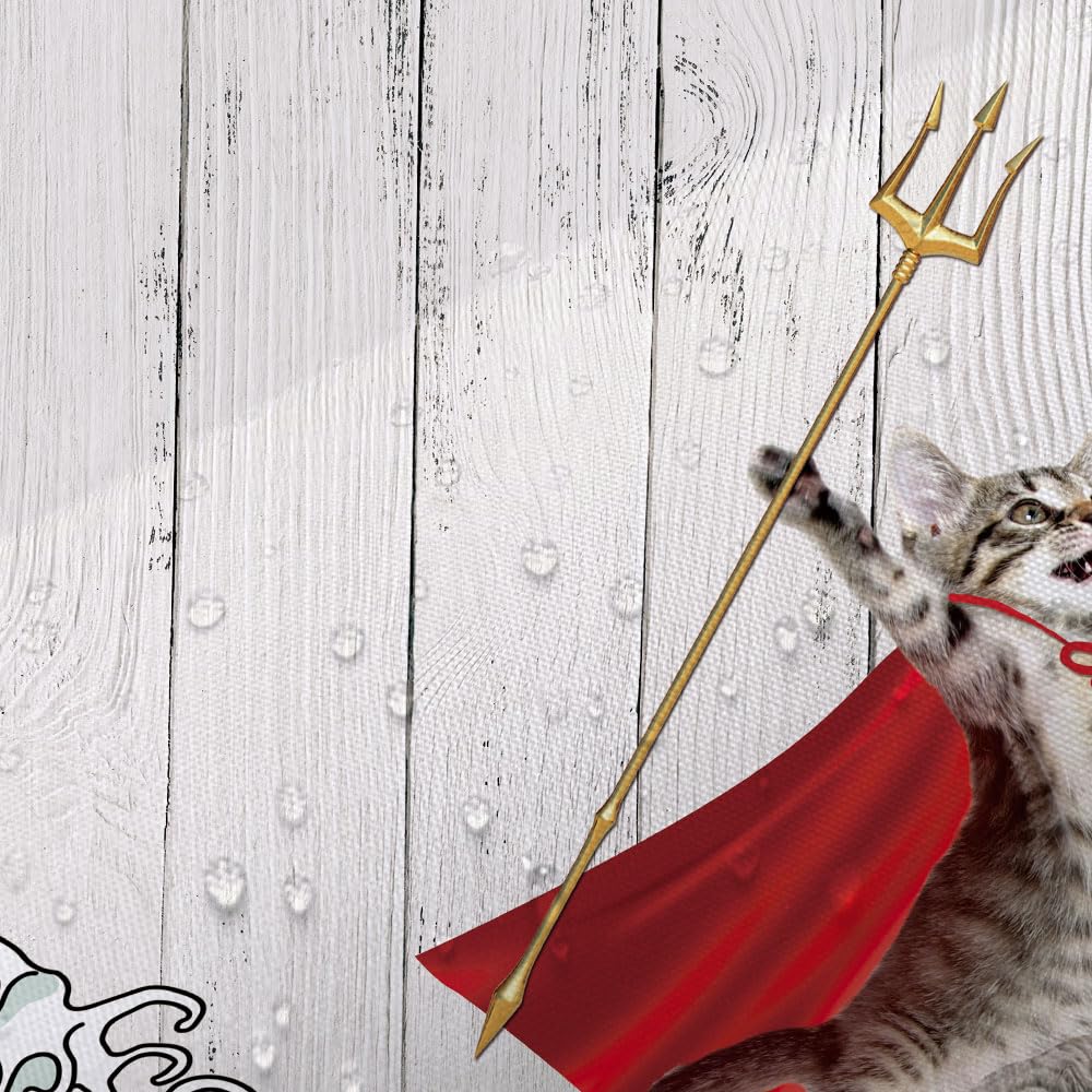 - Q: What makes this shower curtain unique? A: The Funny Cat Shower Curtain features a whimsical design of a cat riding a dinosaur with ocean wave patterns, adding a fun touch to your bathroom.