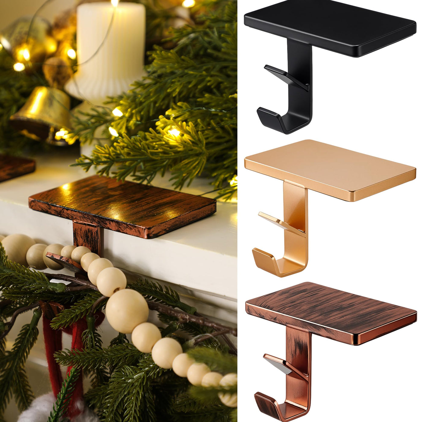Features: This set of 3 stylish Christmas stocking and garland holders is designed to keep your holiday decorations organized and festive. Ideal for fireplaces or mantels, each holder features a unique double hook design, allowing you to hang stockings, wreaths, lights, and more, all at once for a layered, tidy look. Made from durable, rust-resistant metal with a smooth polished finish, these stocking holders for mantle are built to last and can hold 0-5 lbs without slipping or bending. No tools required, just place them on any flat surface for instant setup. Their classic design fits seamlessly into any home decor, whether for daily use or holiday celebrations. Ideal for hanging everything, from LED lights to gift boxes, they're ideal for living rooms, kitchens, and party spaces. Whether you're a holiday enthusiast or simply love a cozy, festive home, these holders add warmth, charm, and convenience to your celebrations. Specifications: Material: cast iron Color: black Size: 4 x 2.6 inch/ 10 x 6.5 cm Package includes: 3 x Christmas stocking holders Notes: Manual measurement, please allow slight errors on size. The color may exist a slight difference due to different screen displays.