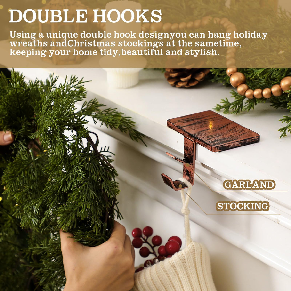 MorningRo 2 in 1 Fireplace Garland and Stocking Hangers for Mantel Heavy Duty Christmas Stocking Holders for Mantle Metal Garlan