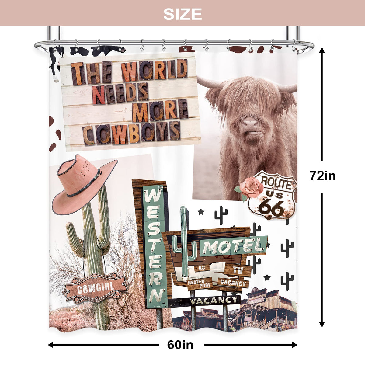- Q: What is the size of the Newsely Western Boho Cow Shower Curtain? A: The Newsely Western Boho Cow Shower Curtain measures 60 inches wide by 72 inches high, making it suitable for most bathtubs and shower stalls.