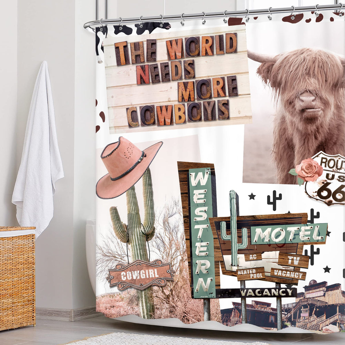 - Q: Is this shower curtain suitable for a farmhouse-themed bathroom? A: Yes, the western boho cow design is perfect for enhancing a rustic farmhouse-themed bathroom decor.