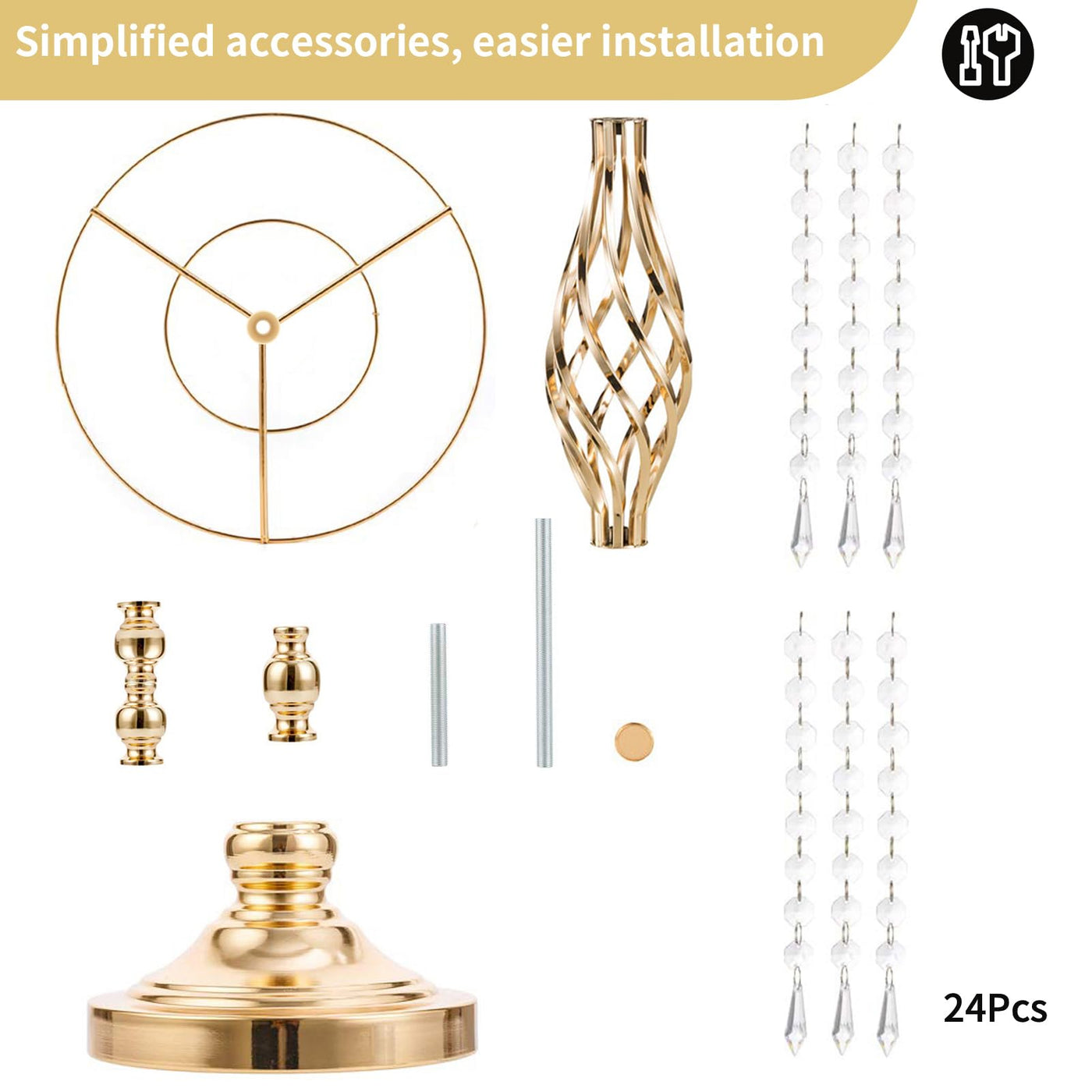 This flower vase makes a great addition to any home, wedding, party or table centerpiece.They can also decorate your birthdays, events, Quinceaneras, and baby showers.Our crystal centerpiece is a timeless & tasteful addition to spruce up home decors & wedding with its elegantly glittering design! SPECIFICATION:Height: 55cm/21.7 inchesTop Plate Diameter: 20cm/7.87 inchesBase Diameter: 14cm/5.51 inchesPackage Includes: 10 pcs wedding metal vase. Artificial flowers are not included in the packages.Application: Home decor, Party decoration, Event centerpieces, Dinning table centerpieces, Living room d cor.Occasions: Wedding & Engagement, Birthday Party, Anniversary, Thanksgiving, Graduation, Valentines Day, Christmas, Grand Event, House MovingMaterial: Metal & Acrylic CrystalWARMLY NOTICE: 1. This flower ball arrangement is assembled by several parts. It requires a simple installation.2. Due to the light and screen difference, the items color may be slightly different from the pictures.3. Please allow slight deviation for the measurement data.