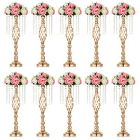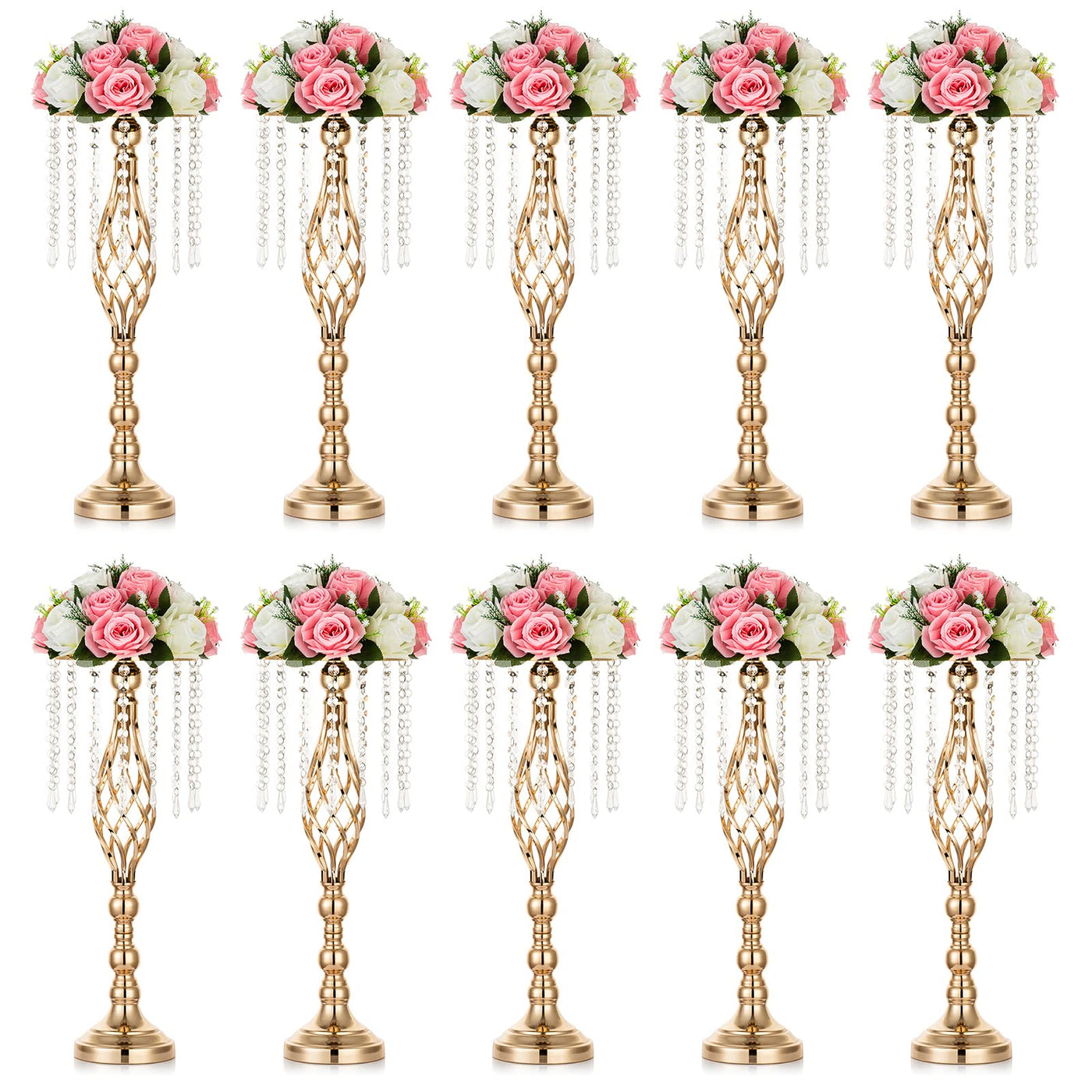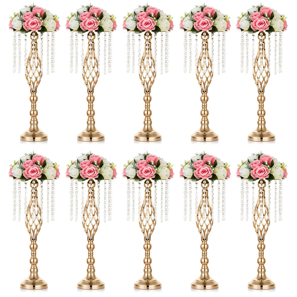 Nuptio 10 Pcs Crystal Flower Stand Wedding Centerpieces for Tables, 21.7in/55cm Tall Elegant Metal Flower Arrangement Stand, Tab